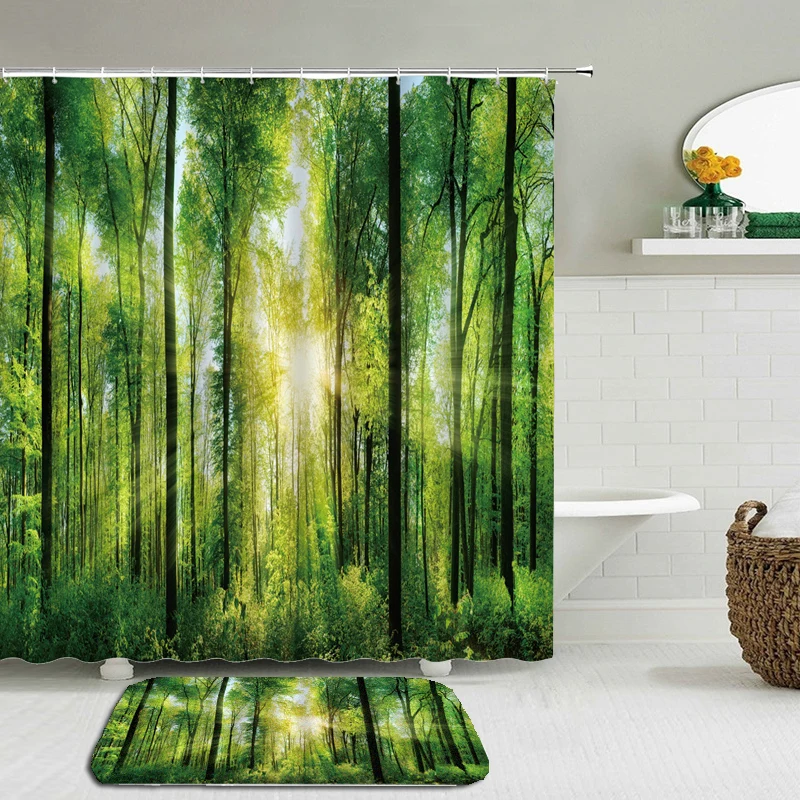 2 шт./компл. 3d натуральный лес зеленые растения набор штор для душа коврик для ванной занавески s водонепроницаемая ткань + нескользящий коврик для ванной комнаты