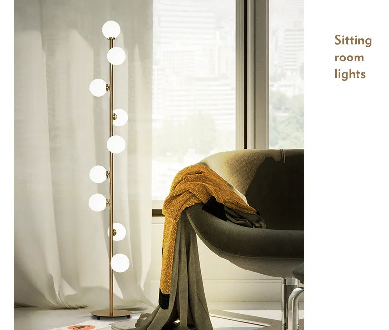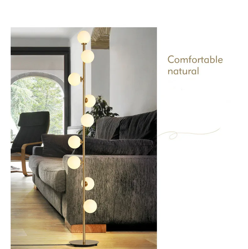 Современная светодиодная напольная лампа со стеклянными шариками, золотые Торшеры для гостиной, спальни, кабинета, скандинавский домашний декоративный светильник, прикроватная стоячая лампа