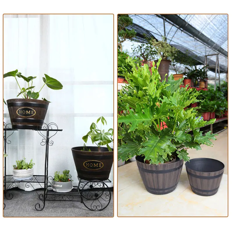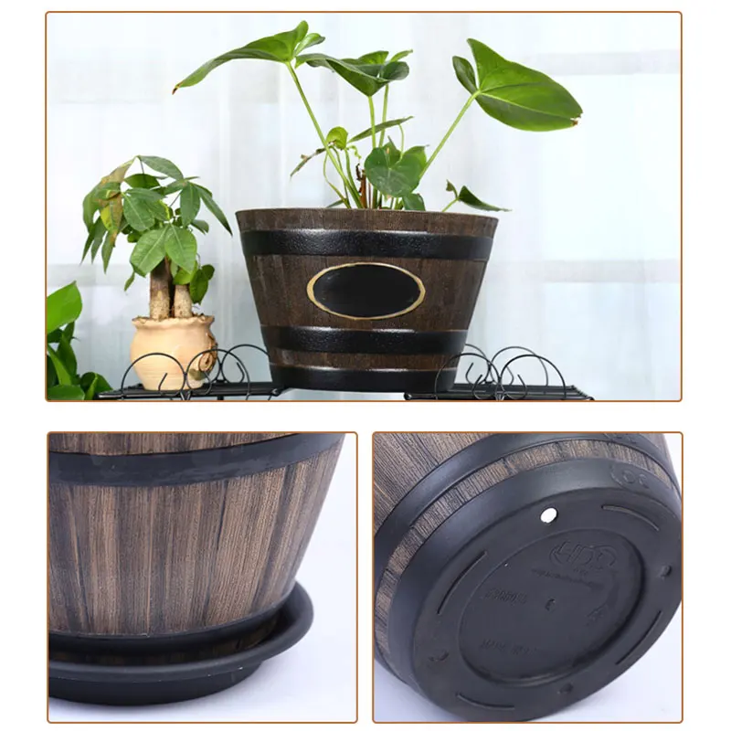 Имитация винтажных деревянных бочек из смолы, бочка для виски, цветочный горшок, Круглый семейный горшок для улицы, сада, двора, патио