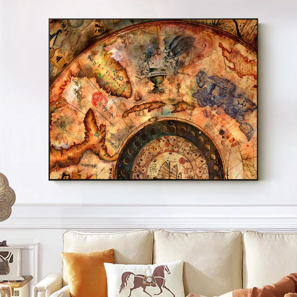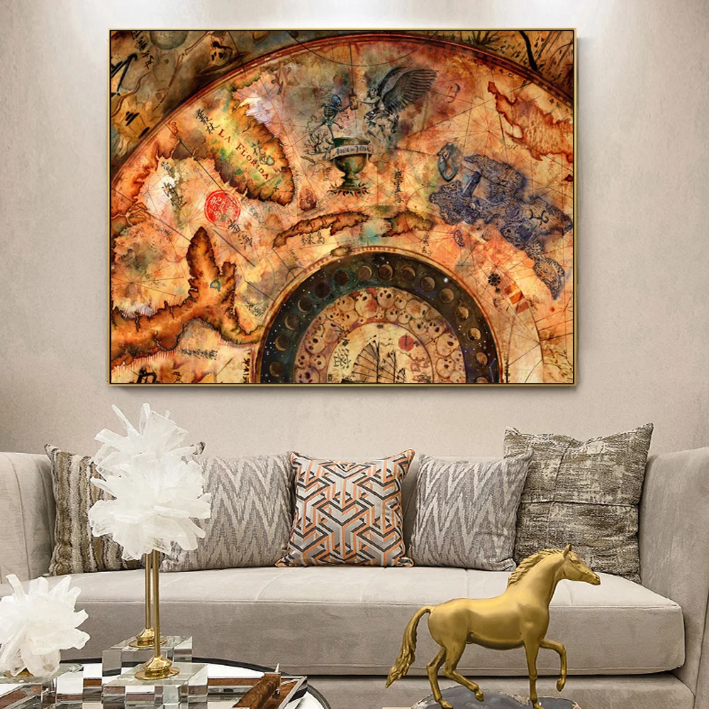 Винтажная Картина на холсте с золотым компасом, украшение для дома,...