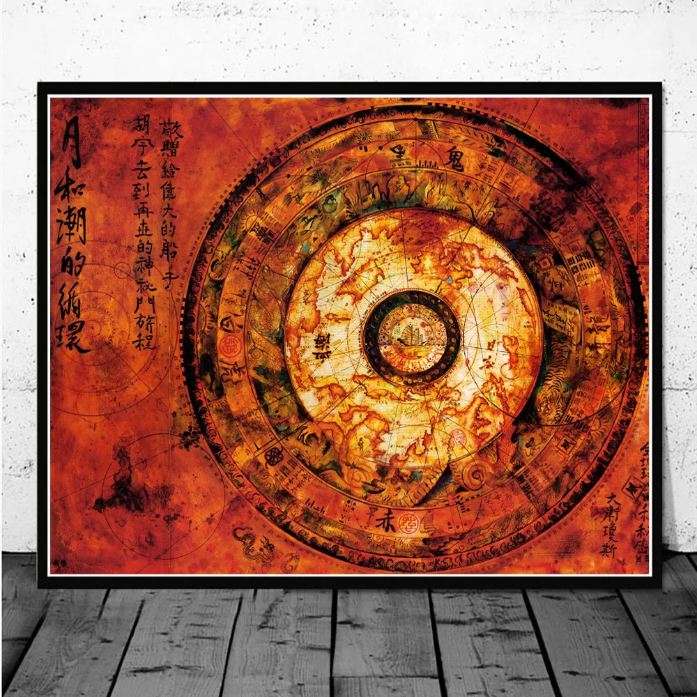 Картина с картой фильма средней земли, холст, постеры и принты, вин...