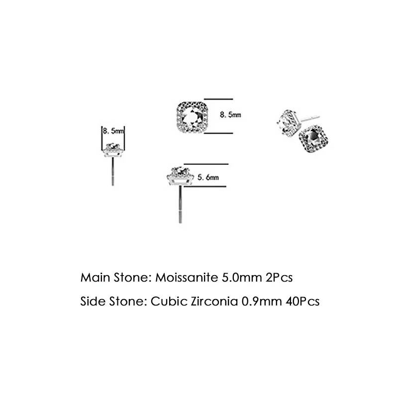 Серьги женские квадратные из серебра 925 пробы с муассанитом, карат
