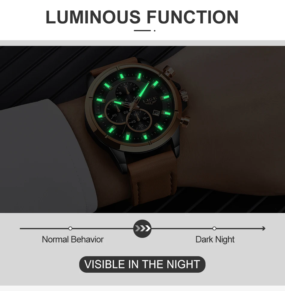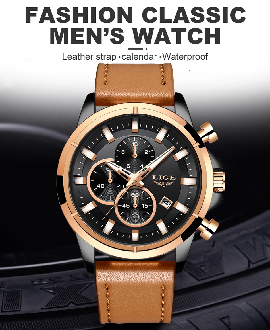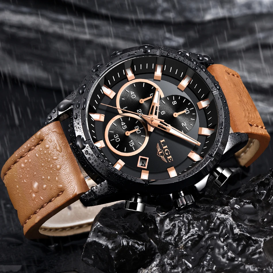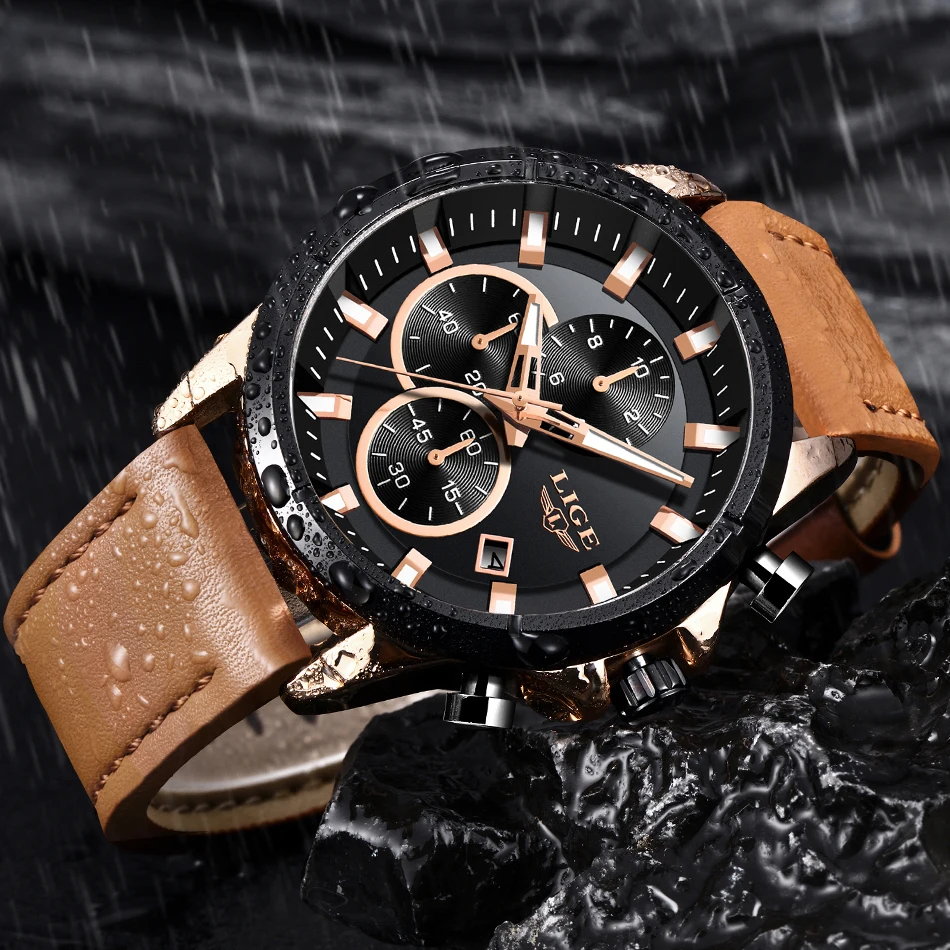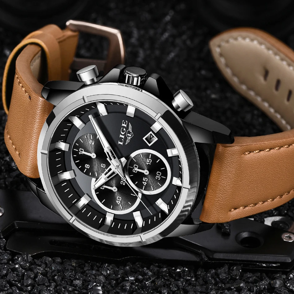 Часы Мужские Аналоговые Кварцевые с хронографом, водонепроницаемые