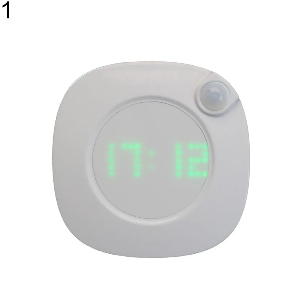 Светодиодный движения Сенсор ночной Светильник Настольные Цифровые Часы Дисплей часы Спальня Ванная комната лампы