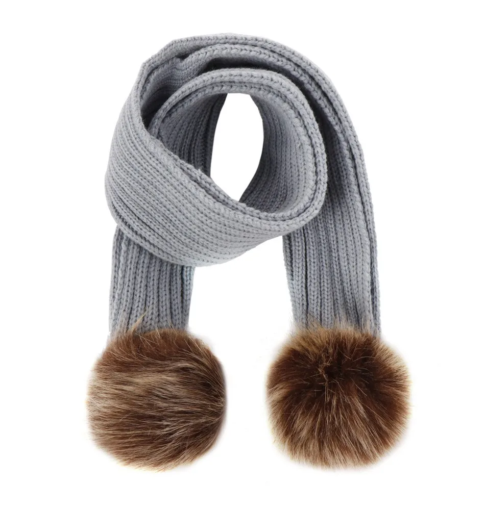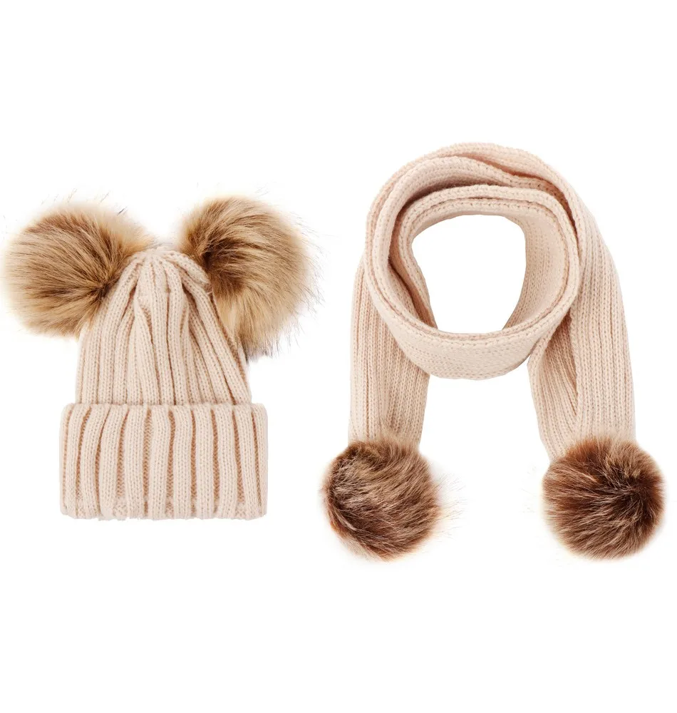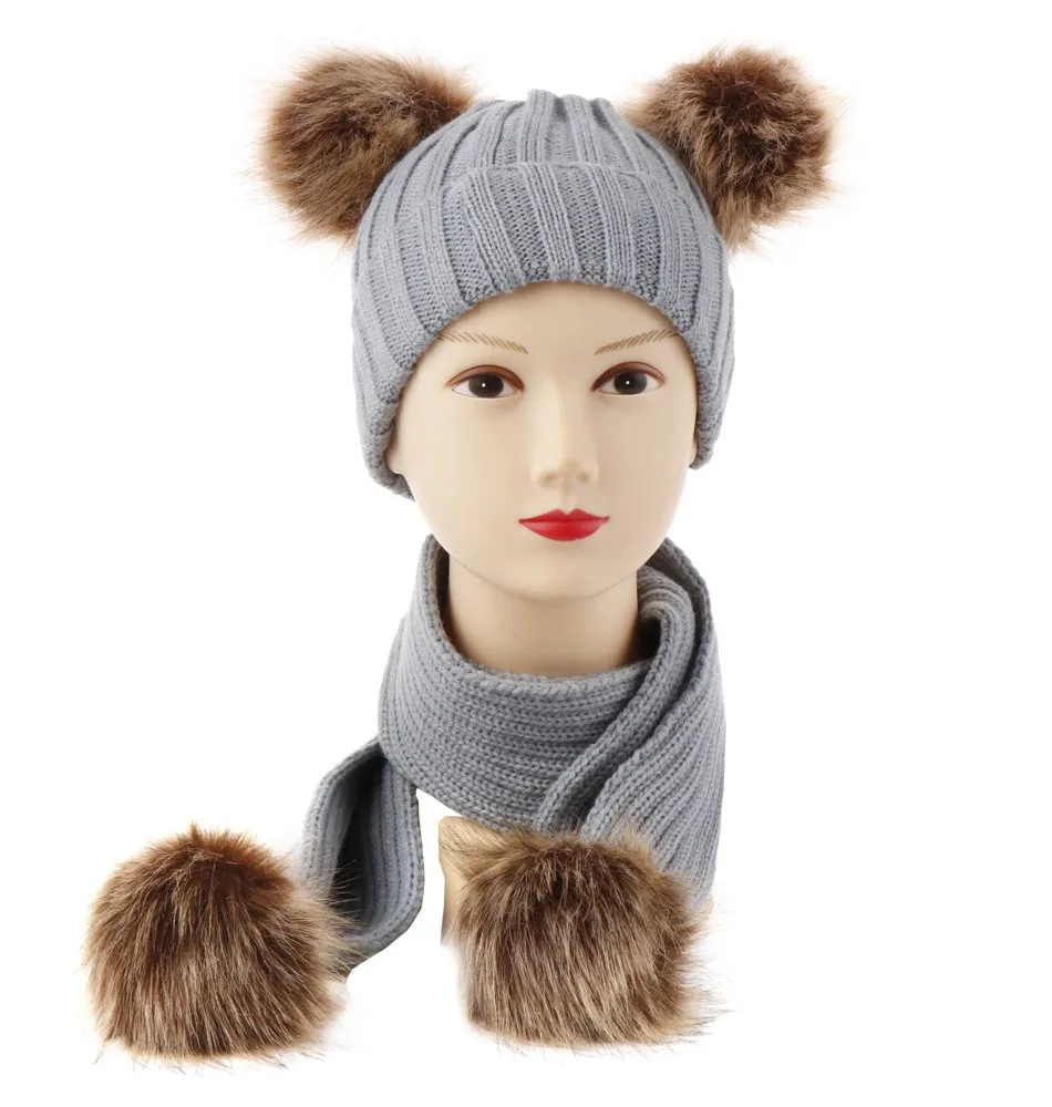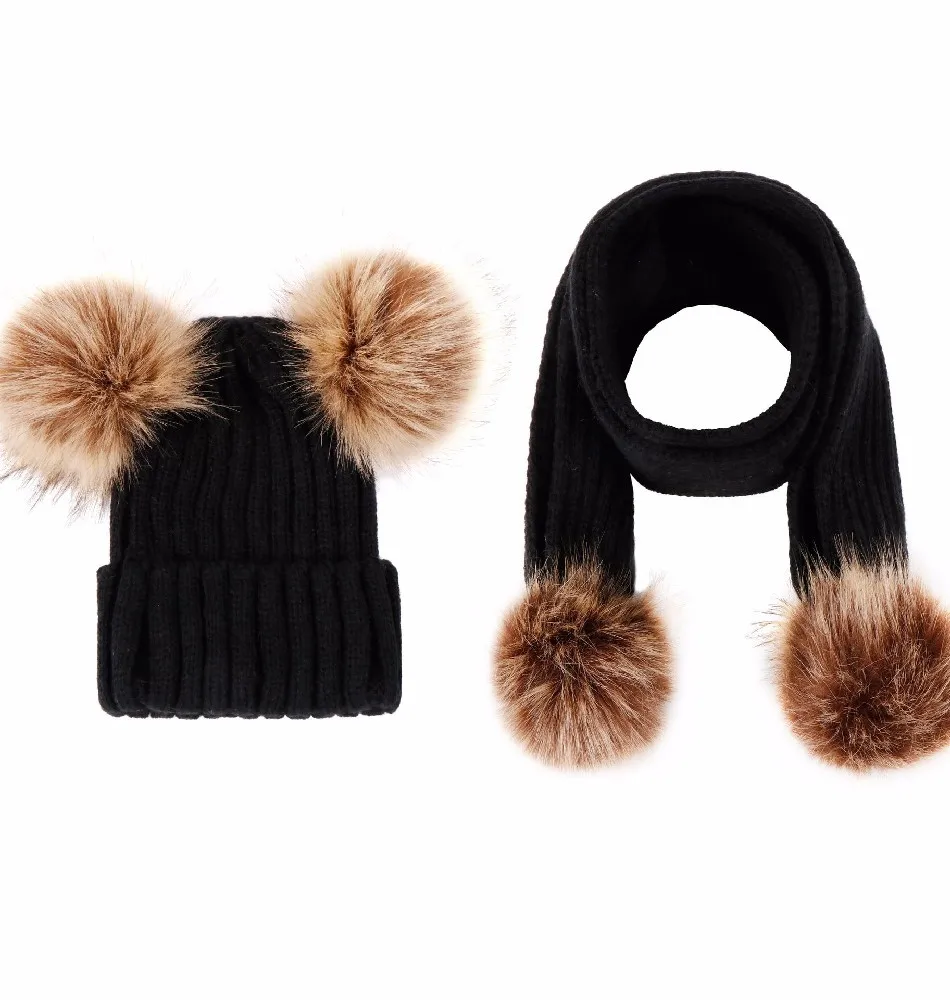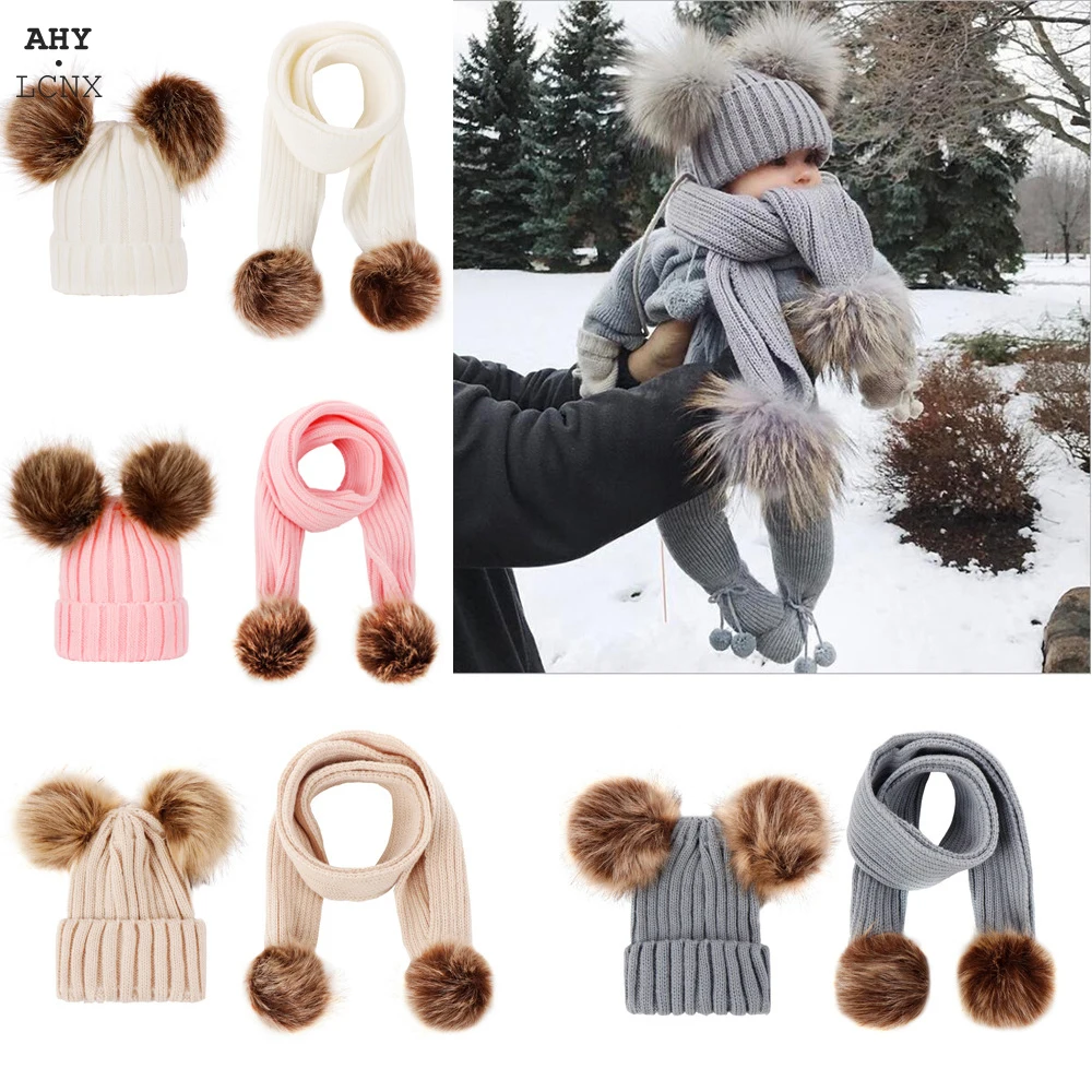 Детская шапка, шарф в комплекте, Детские теплые зимние шапки, шапки с помпонами для младенцев, шарфы, костюмы, детские шапки с помпоном из натурального меха, вязаные шапки, шапочки