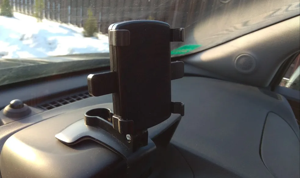 Почти два месяца добирался заказ до Беларуси. Упаковку изрядно потрепало, но сам держатель прибыл без повреждений. Как-то не впечатлило с первого взгляда. Зажим, который крепится к приборной доске, вроде нормальный, а вот боковые захваты, что держат телефон, хотелось бы сделать побольше, рассчитаны они на тонкий телефон без чехла. И снизу упор для телефона был бы не лишним. Посмотрим, как в поездках себя покажет.
