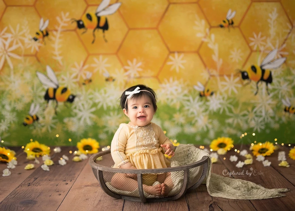 Фон для фотосъемки новорожденных с изображением пчелы Mehofond