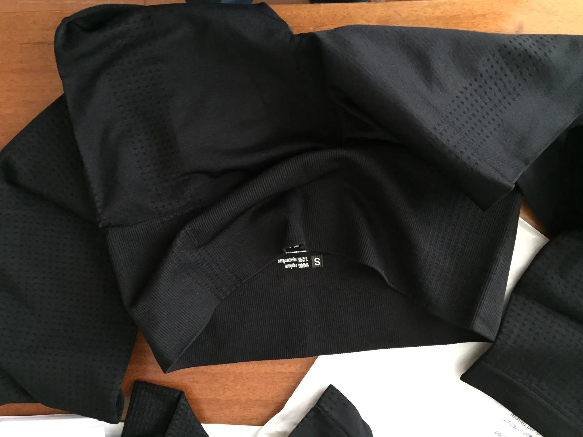 Взяла 5 вещей в чёрном цвете, рада выбору. На рост 168 подошла М, сидит идеально. Качество отличное, нитки не торчат, ткань приятная . В топе идут чашки съёмные. В футболке и кофте с длинным рукавом нет, купила под них спортивный бюстгальтер, либо можно надевать топ под них. Заказывала перед новым годом, дошёл недели за 3. Очень довольна покупке