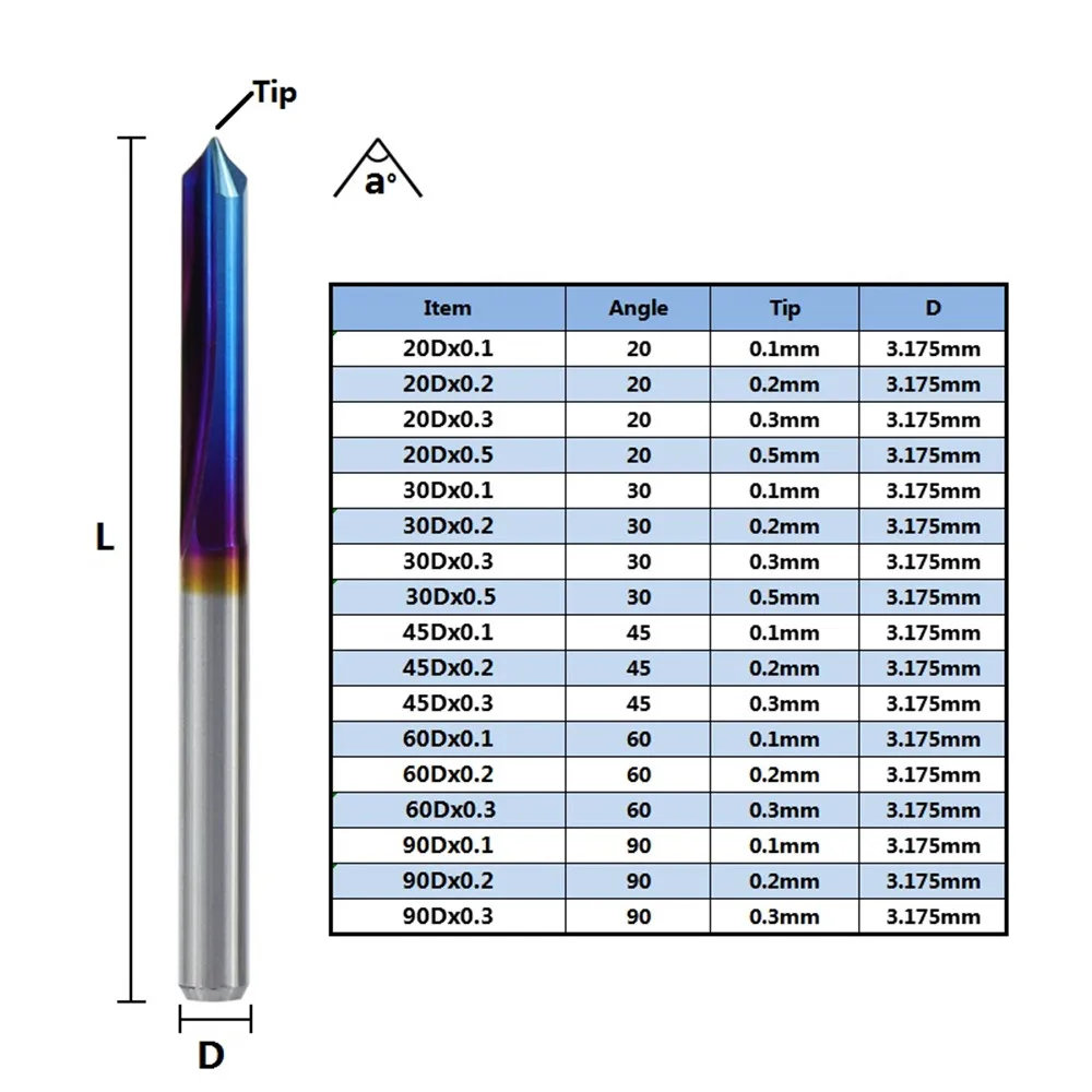 10 шт., v-образная гравировальная головка для древесины, 3,175 мм