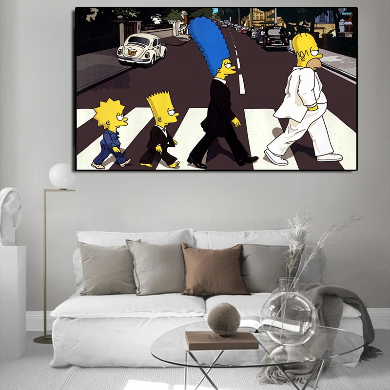 Simpsoning Abbey Road, Барт, Гомер, Мардж, холст, живопись, печать, гостиная, домашний декор, современные искусственные плакаты