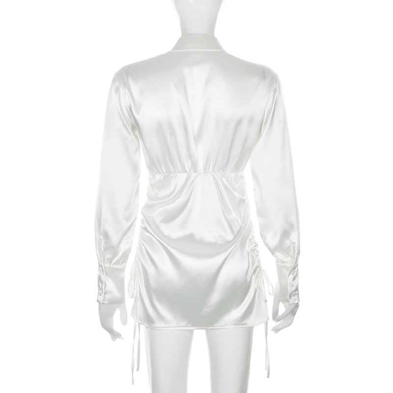 Модные шикарные атласные однотонные белые платья Darlingaga с длинным рукавом и завышенной талией, осенние женские платья с отложным воротником