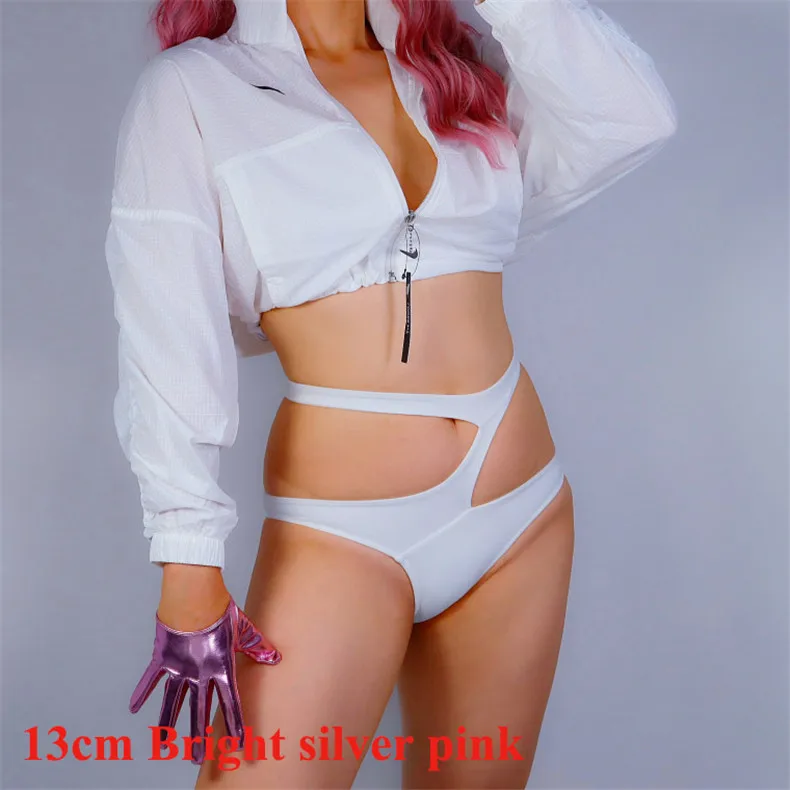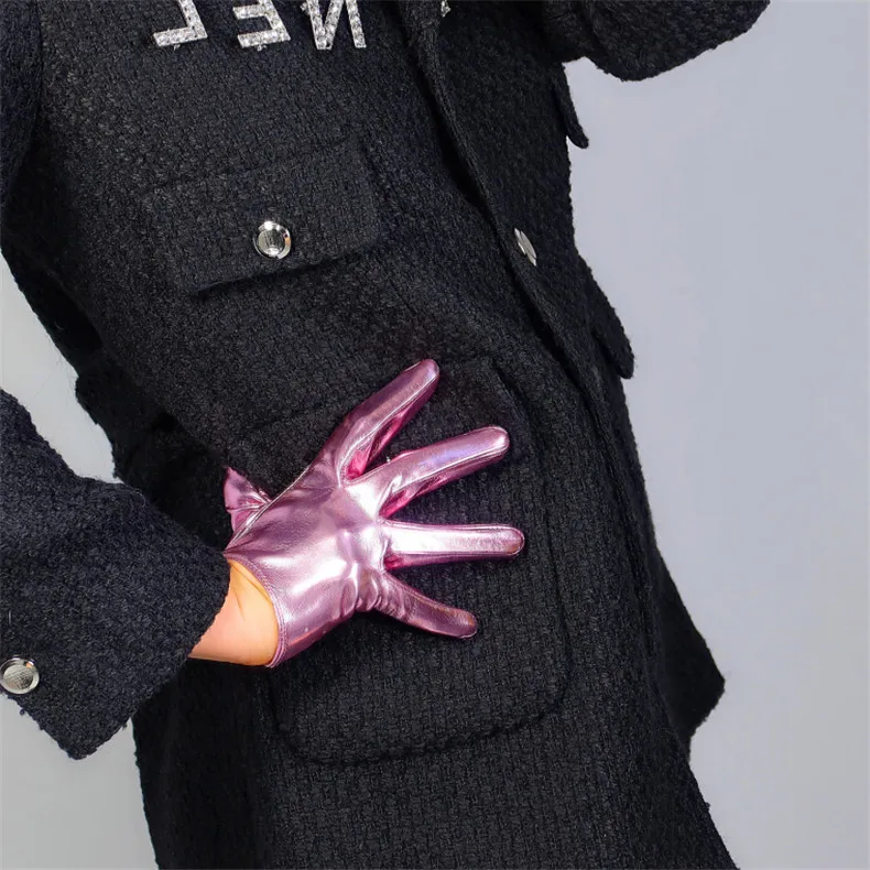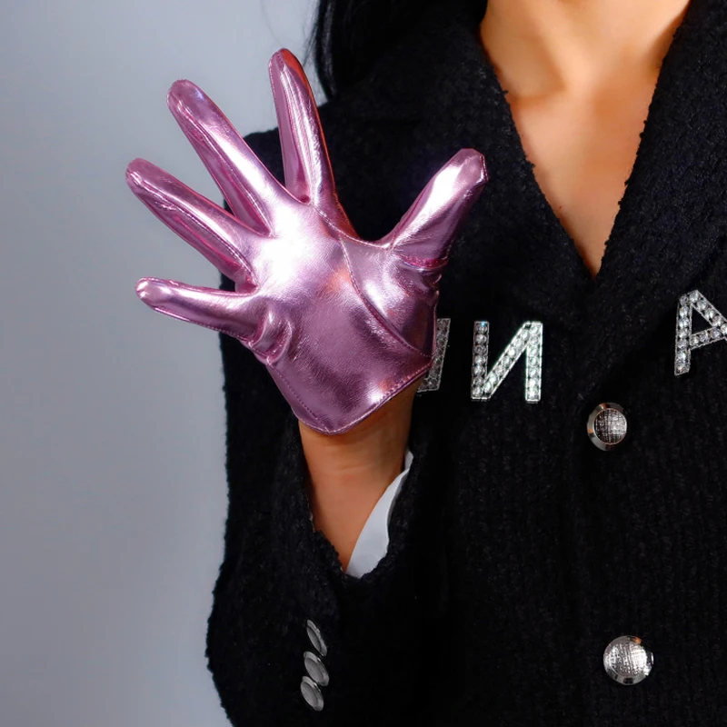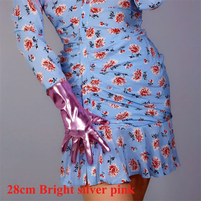 Латексные очень короткие перчатки из искусственной лакированной кожи 6 дюймов 16 см блестящие серебристо-розовые женские кожаные перчатки WPU277