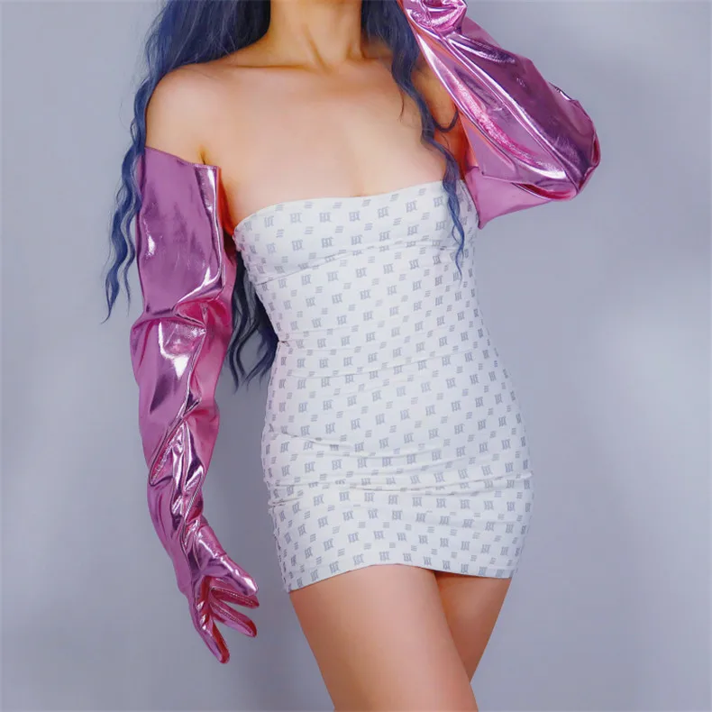 Латексные длинные перчатки, блестящие кожаные перчатки из искусстве...