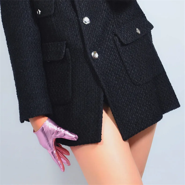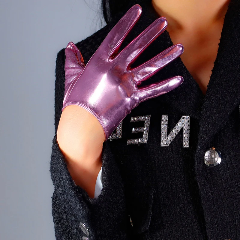 Латексные Экстра короткие перчатки Искусственный Блеск лакированная кожа 6 "16 см блестящий серебристый розовый женские кожаные перчатки WPU277