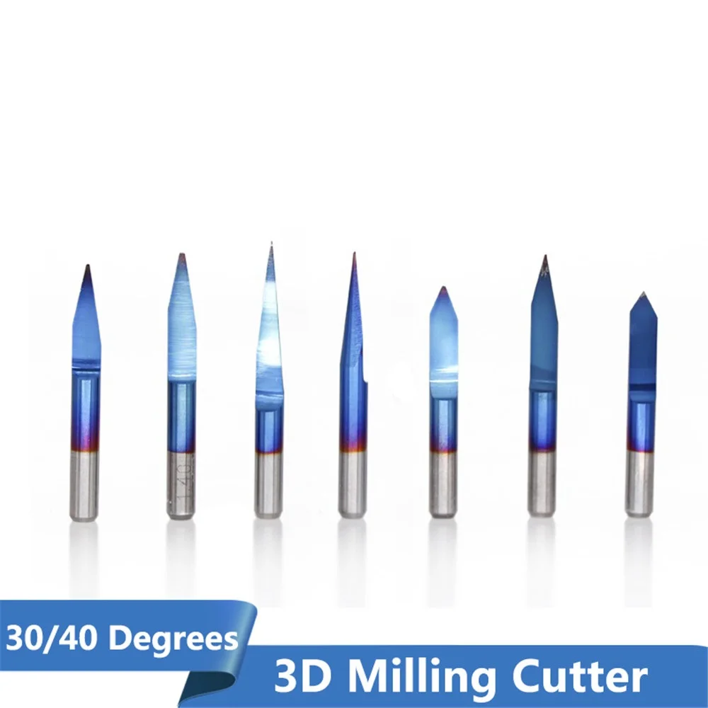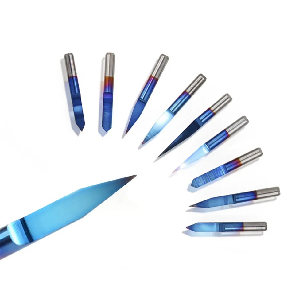 Гравировальные сверла с голубым покрытием pcb 3d, 3040 градусов, карбидный v-образный фрезерный станок с ЧПУ, фреза для гравировки с ЧПУ, 10 шт.