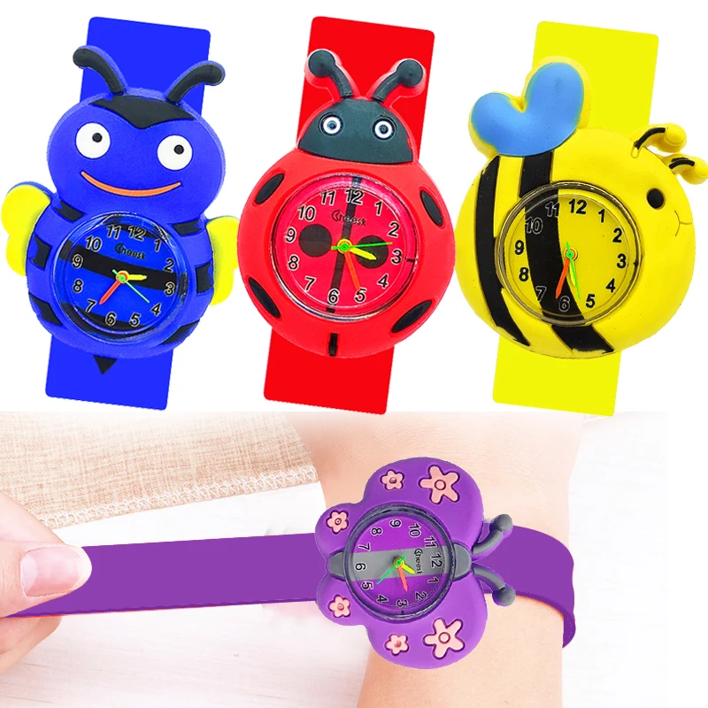 Часы Детские с мультяшными Божьими коровкамиПчелкойбабочкой, часы для мальчиков и девочек, 3D лягушкой, детский игрушечный браслет, детские часы, подарок на Рождество