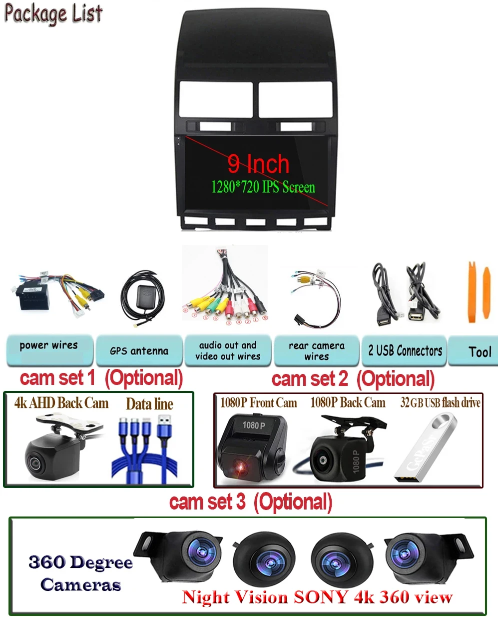 Автомобильный мультимедийный стерео-проигрыватель с камерой 9 дюймо...
