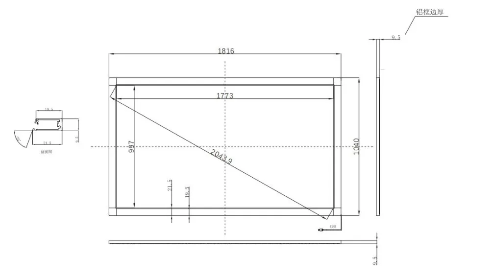 80 дюймов 10 точек ИК мульти сенсорный экран Размер продукта чертеж: