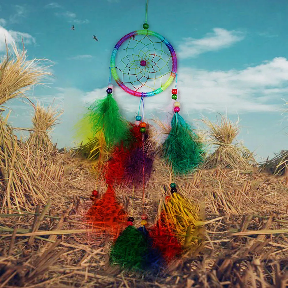 Радужный красочный Ловец снов индийские бусины перо украшение для к...