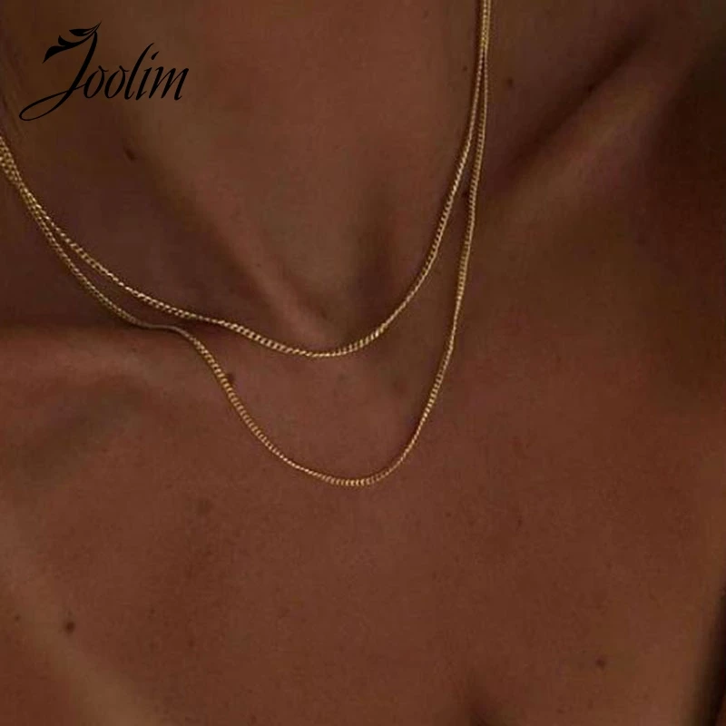 Ожерелье из нержавеющей стали JOOLIM с изящной цепью, ожерелье в 2 ряда