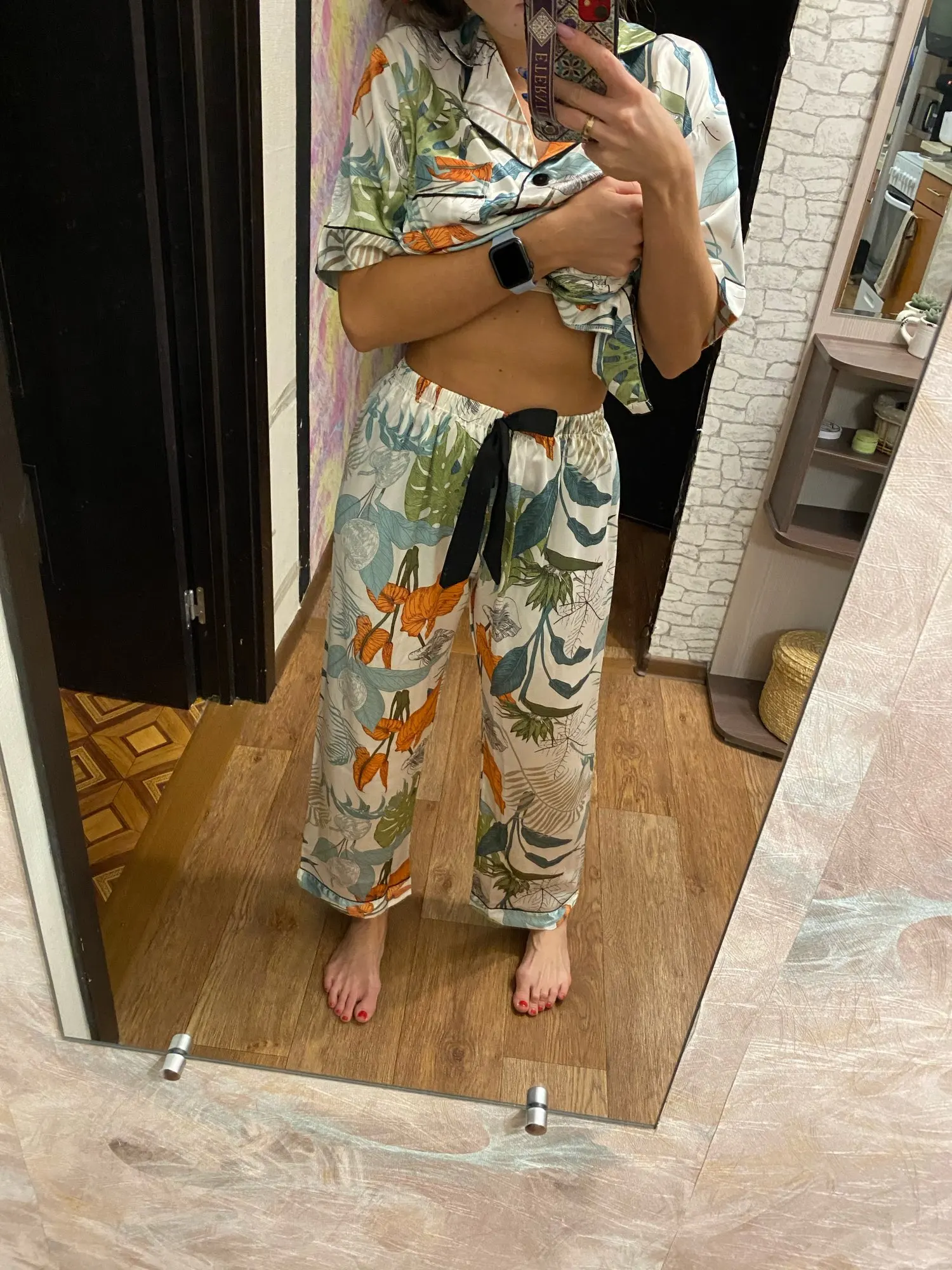 Точнее не придумать! Ткань шёлковая, очень приятная, уверена прослужит долго без затяжек, но стирать необходимо при 30°. Длина штанишек на 163 метра моего роста, ниже чем на модели.. Как я хотела, спасибо ❤️