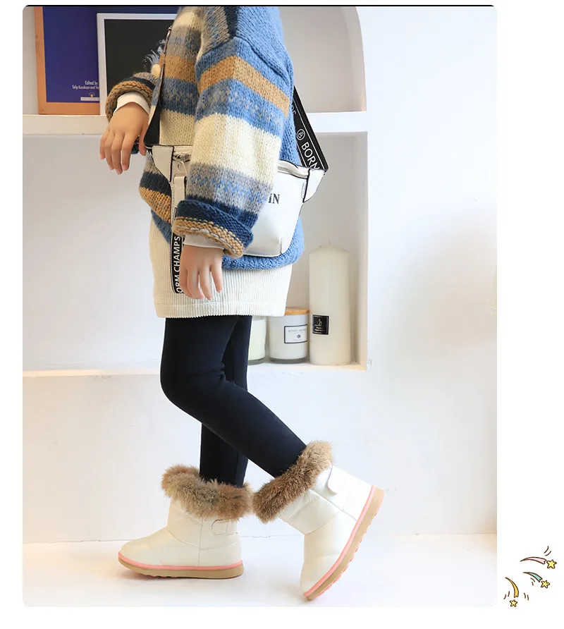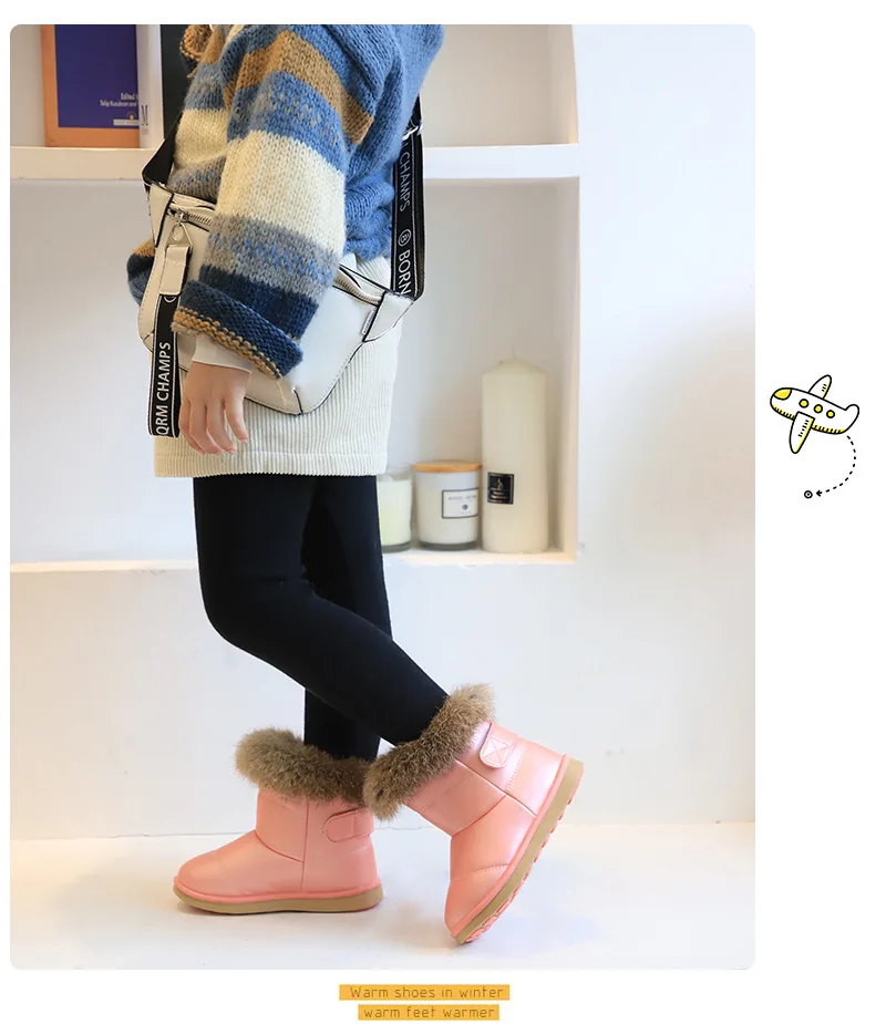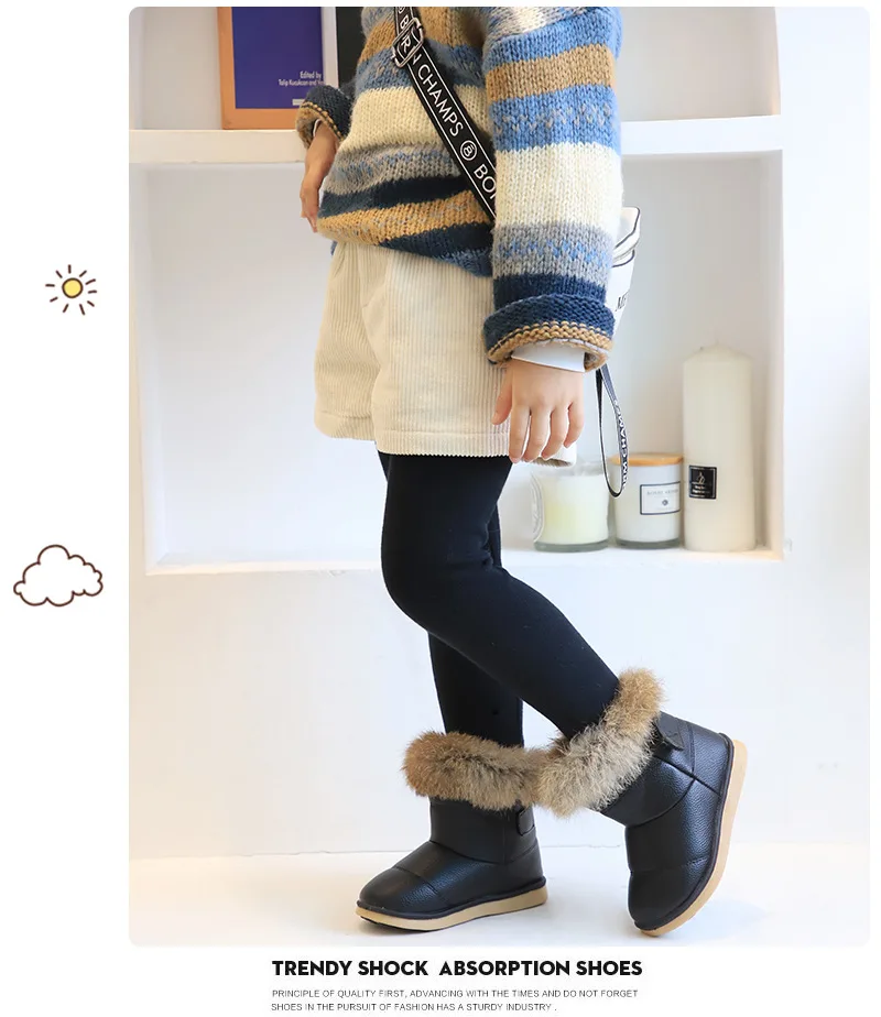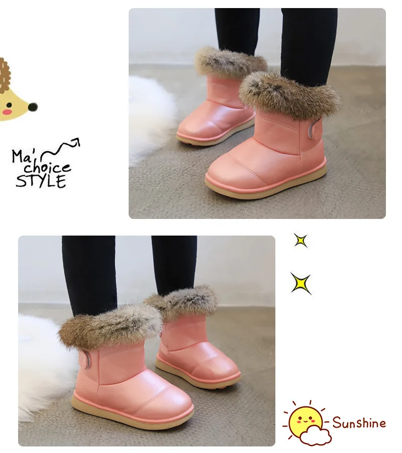 Зимние ботинки для девочек 2020, детская теплая хлопковая обувь на мягкой подошве, Ботинки Martin с кроличьим мехом, нескользящая детская обувь для малышей D758