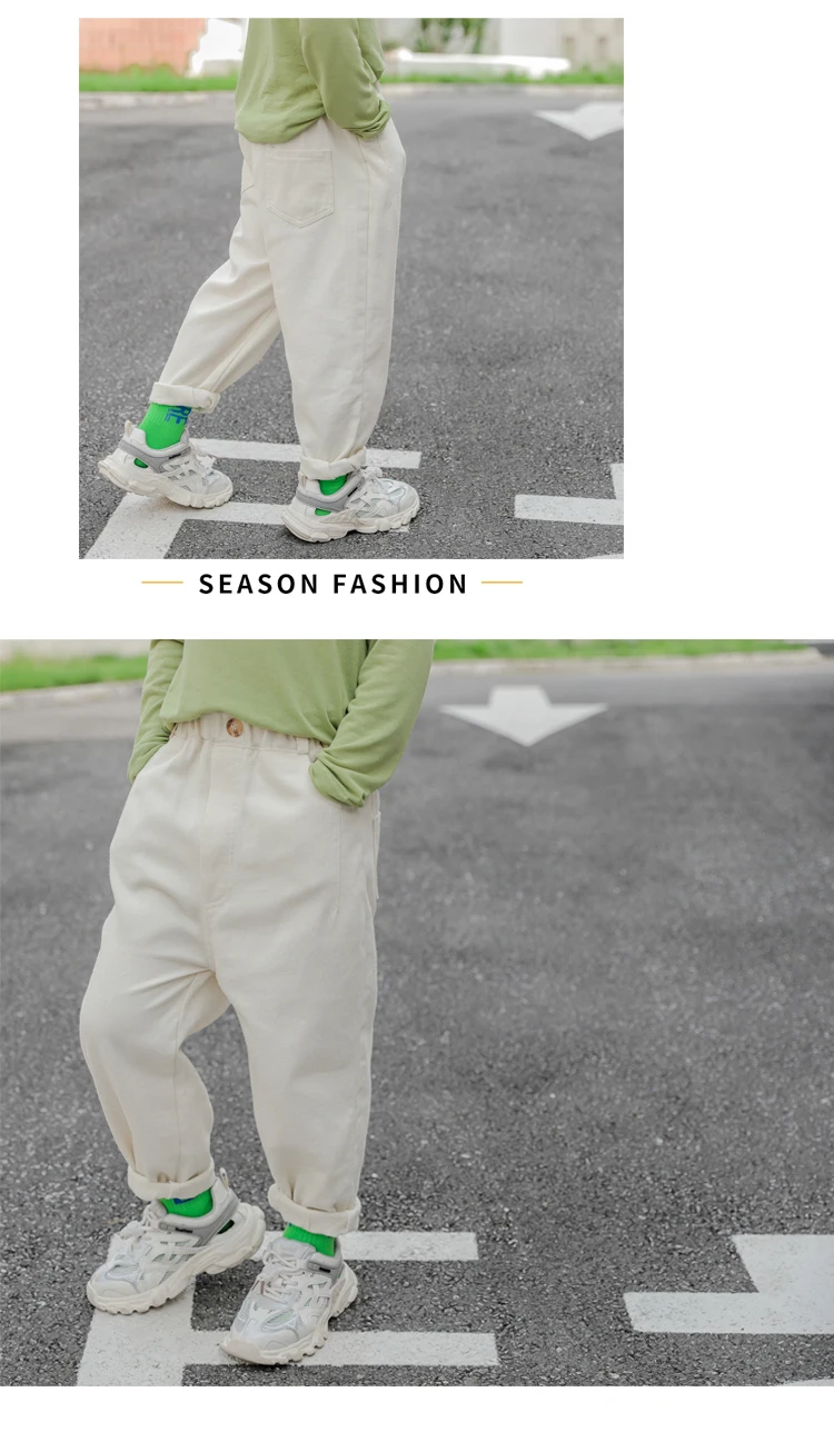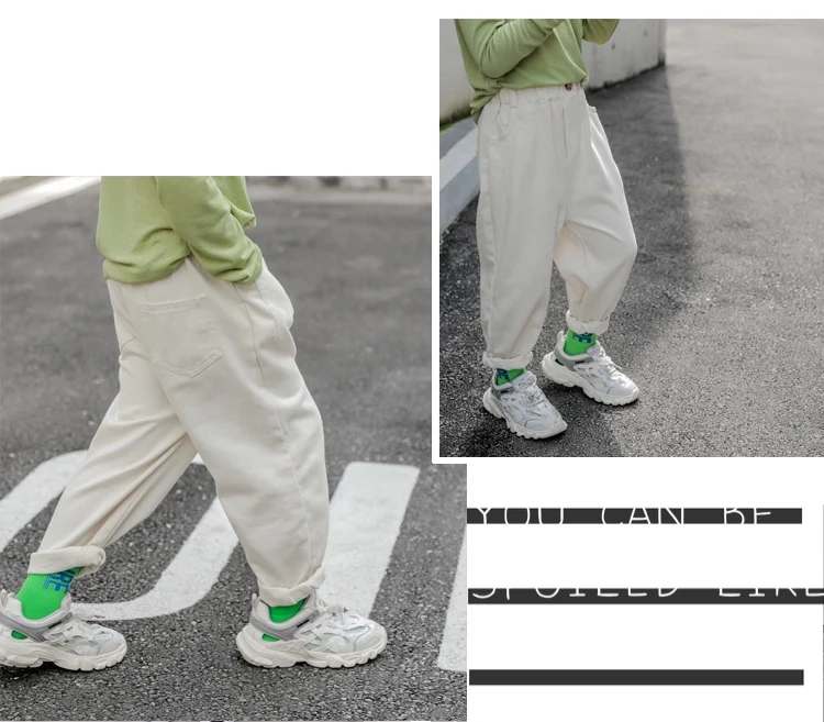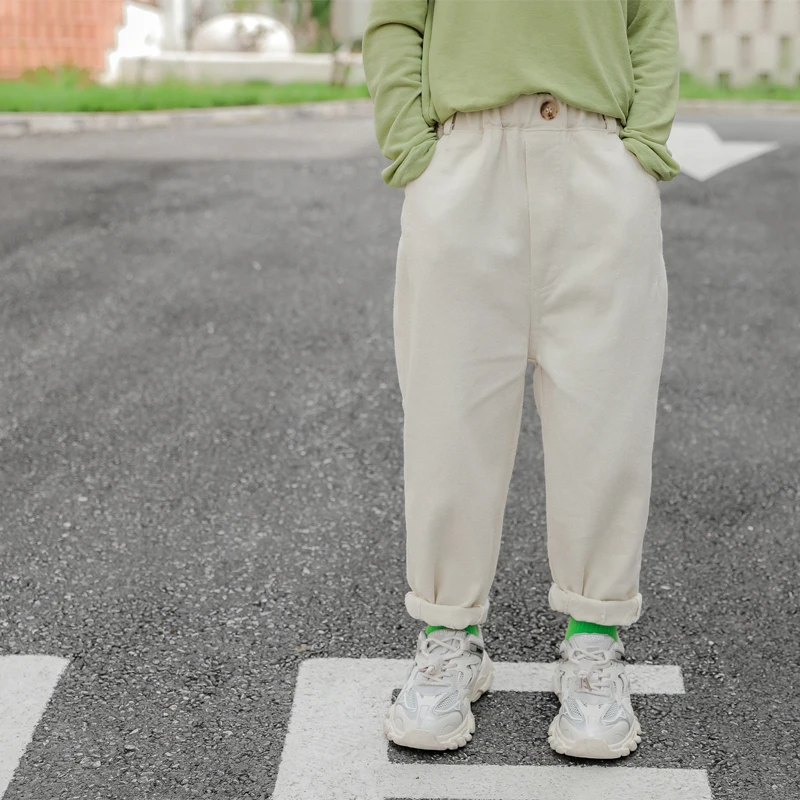 Штаны для малышей весна-осень, повседневные однотонные штаны с элас...