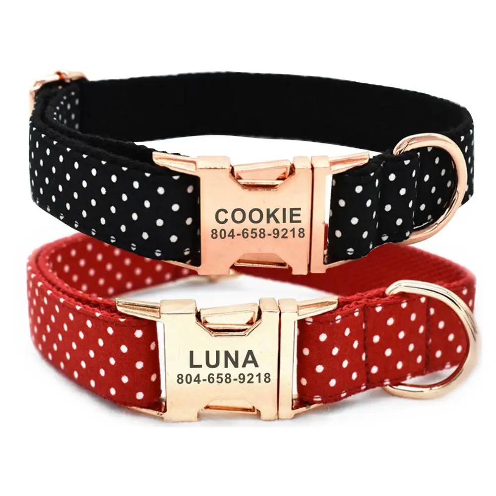 Ошейник для питомца, персонализированный поводок для собак, в белый горошек, с именем под заказ, с пряжкой под розовое золото, красного, черного цвета