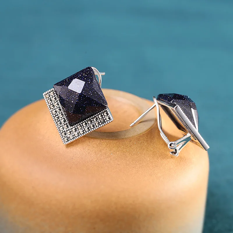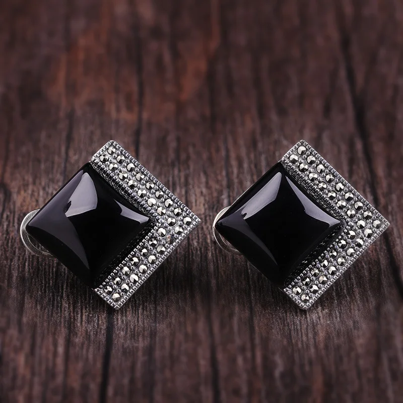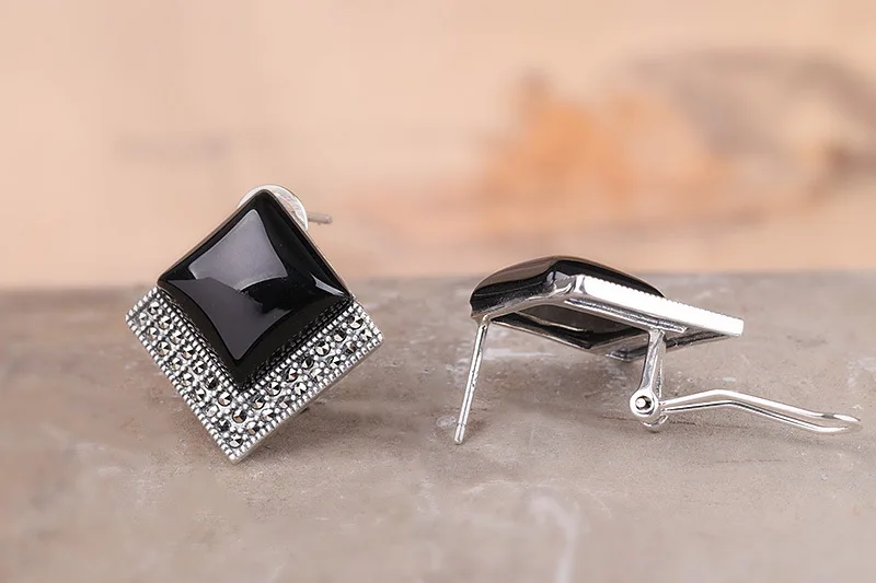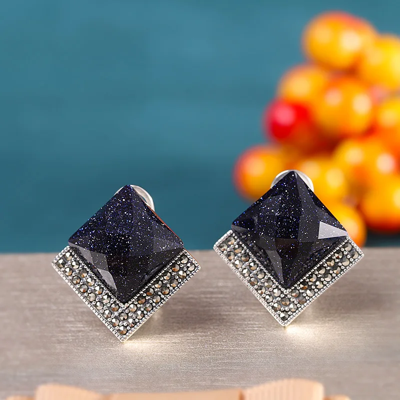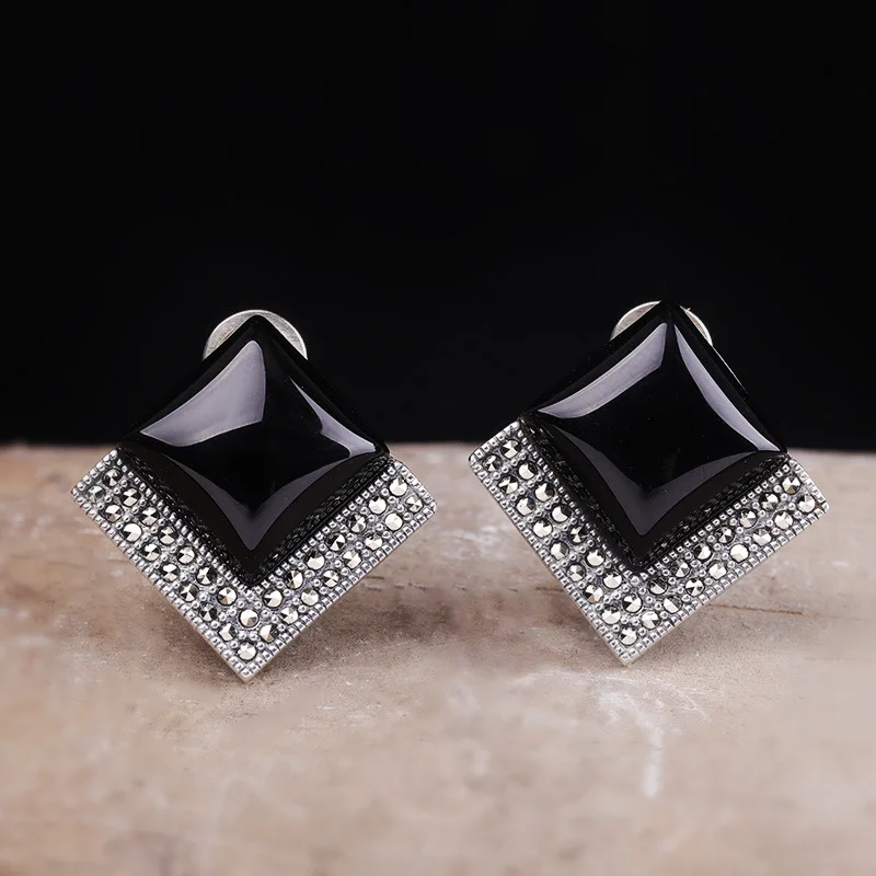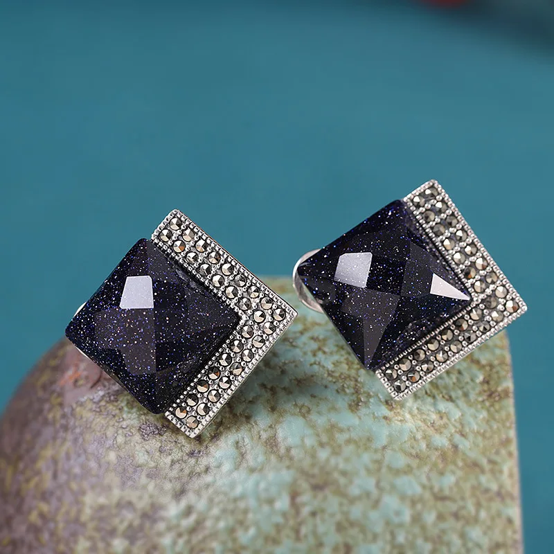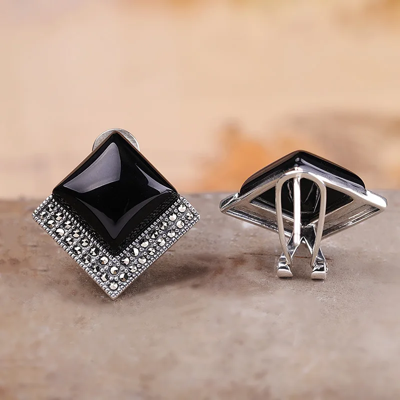 Граненые блестящие серьги без блеска для женщин, серьги-Клипсы из настоящего серебра 925 пробы с марказитом, Этнические украшения