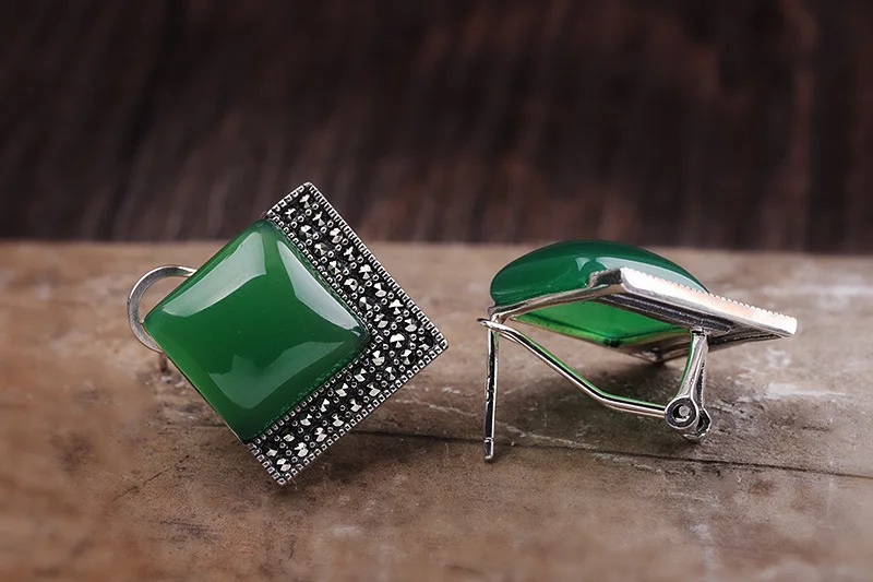 Женские серьги из серебра 100% пробы, с натуральным нефритом