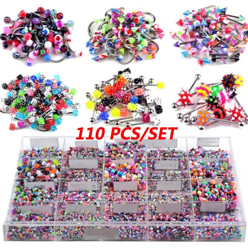 Набор разнообразных стилей из нержавеющей стали 316L Хрустальный язык живота губ бровей носа сосков штанга кольца, пирсинг тела, украшения для подарка