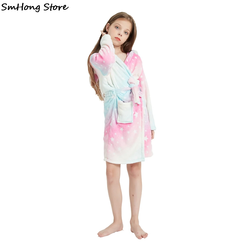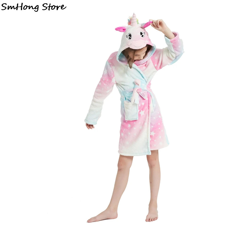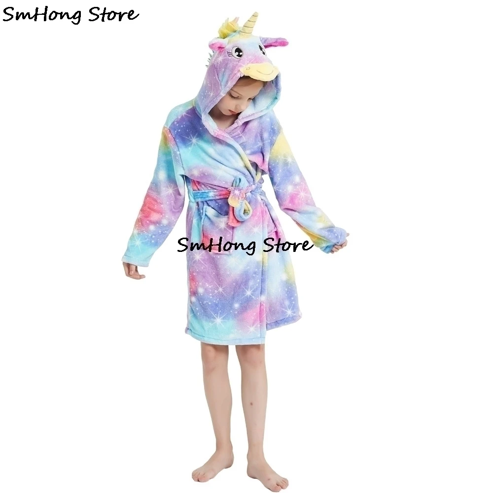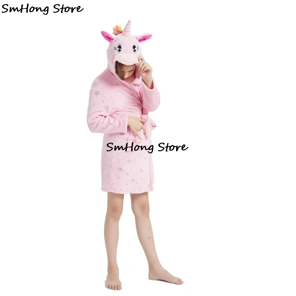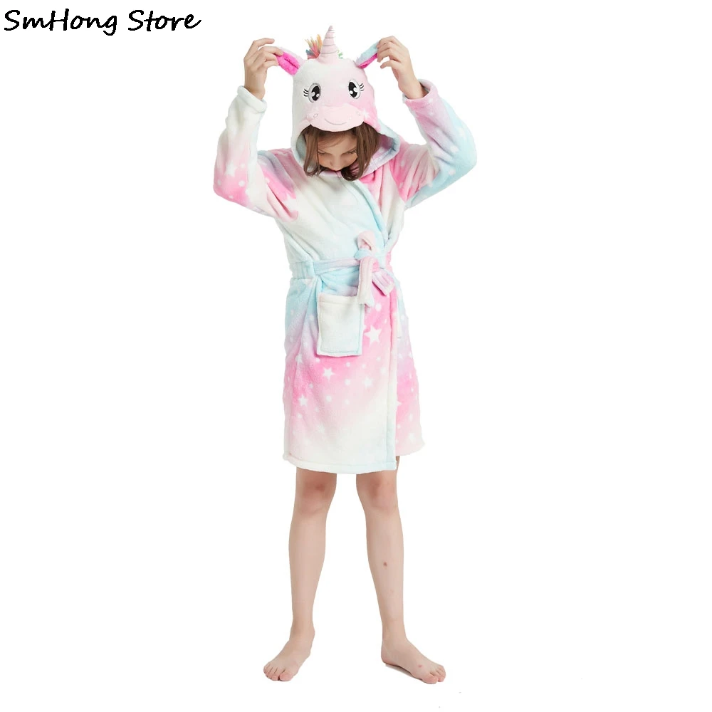 Детская Фланелевая Пижама-кигуруми, для девочек, зимняя, купальные халаты с капюшоном