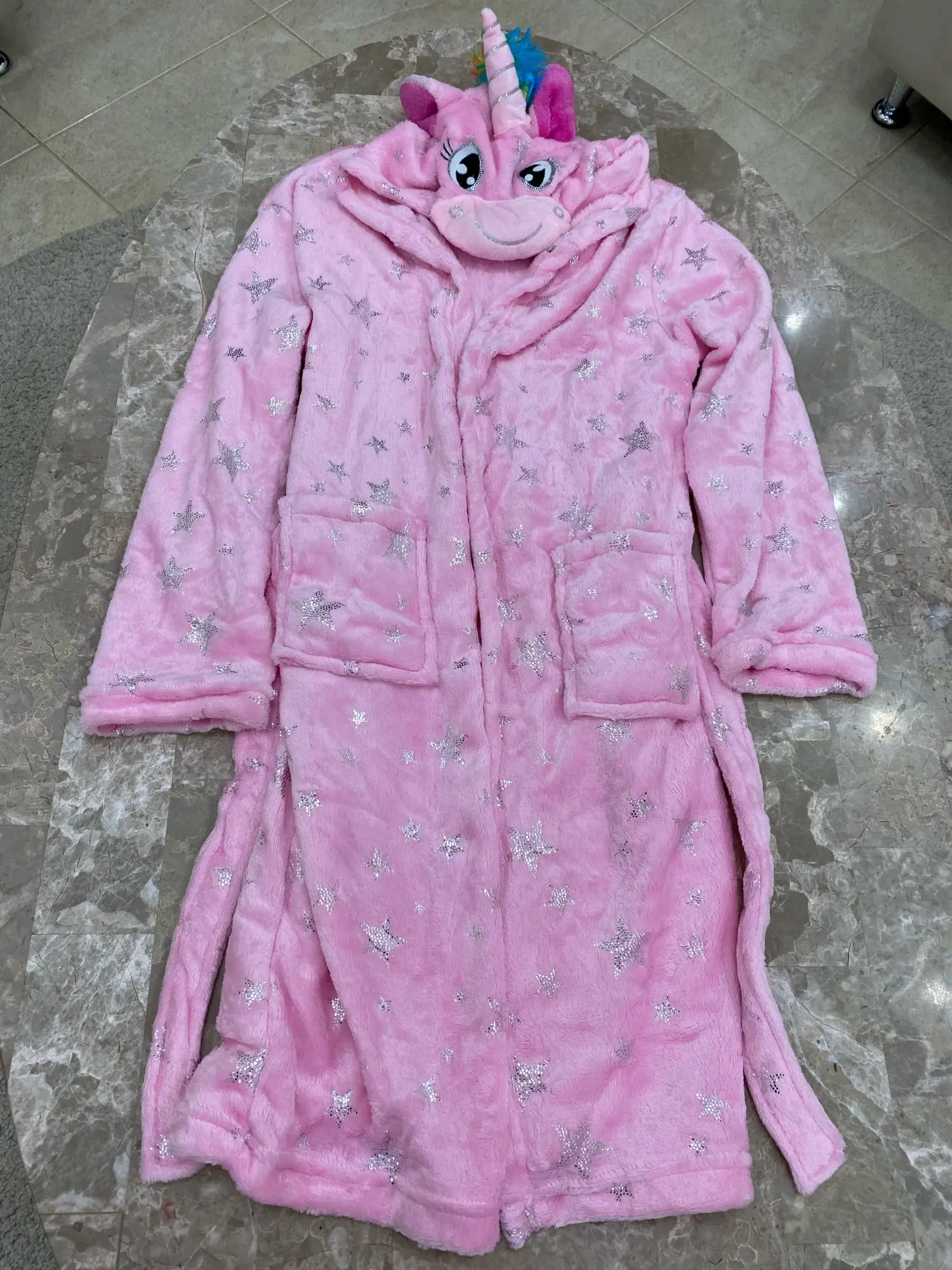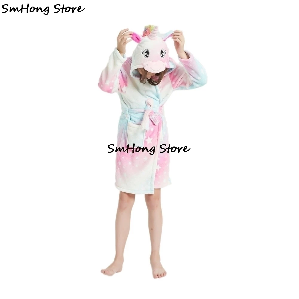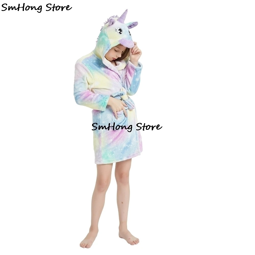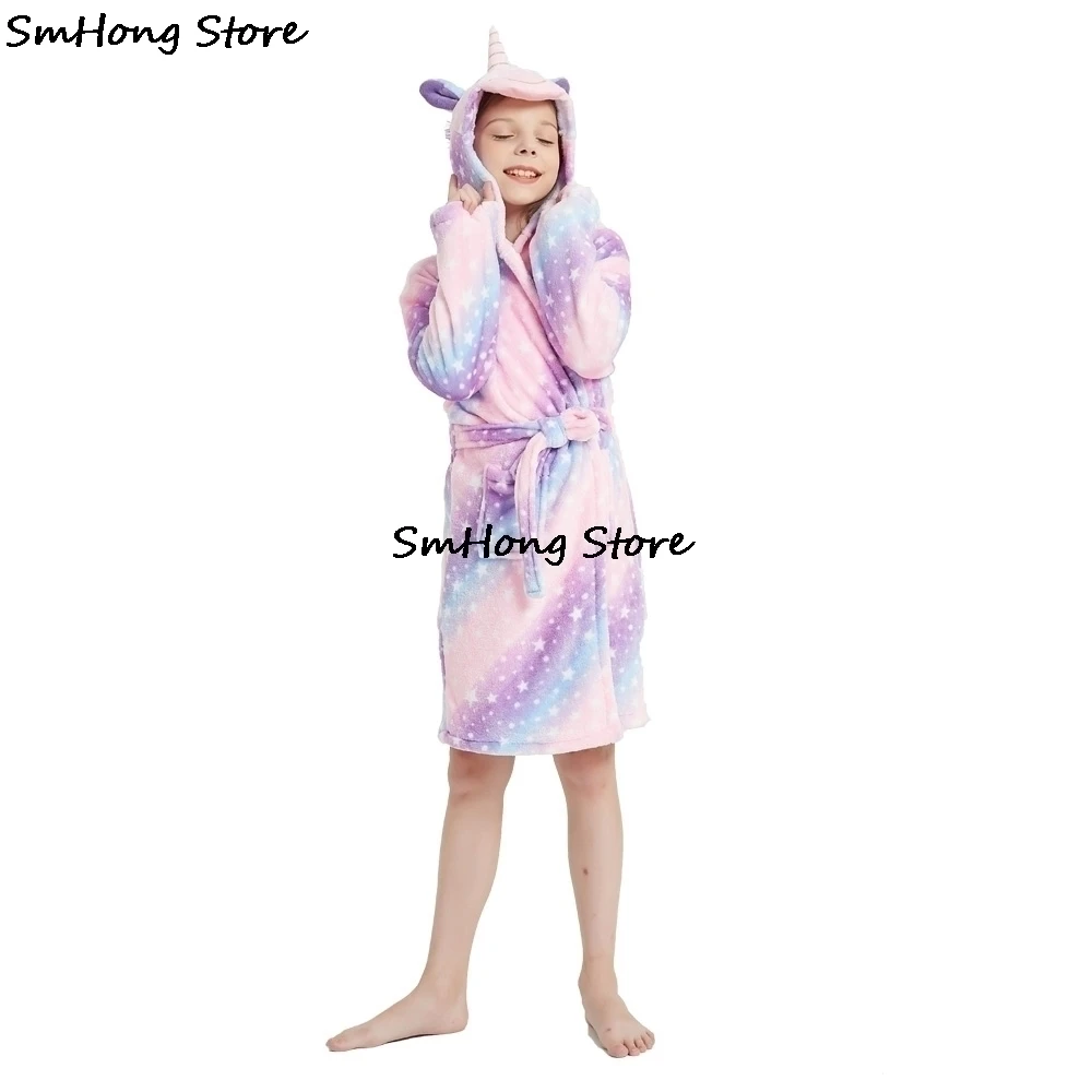 Детская Фланелевая Пижама-кигуруми, для девочек, зимняя, купальные халаты с капюшоном