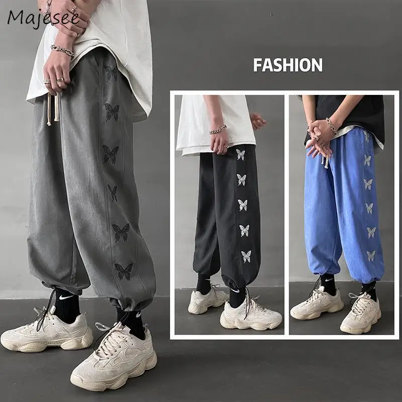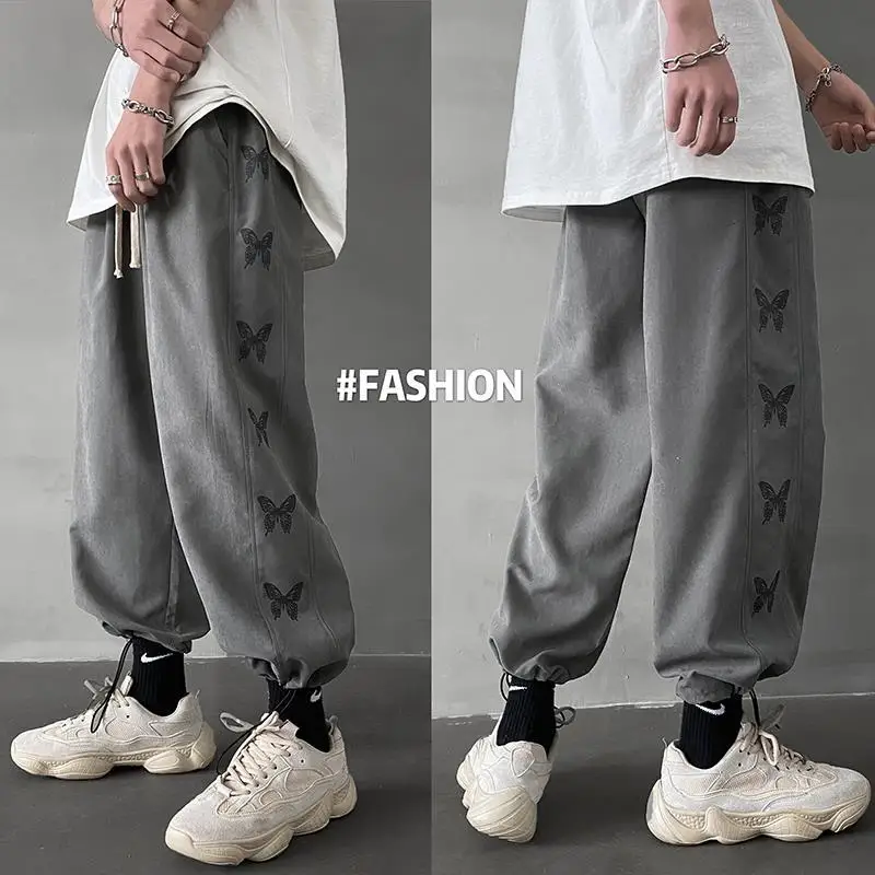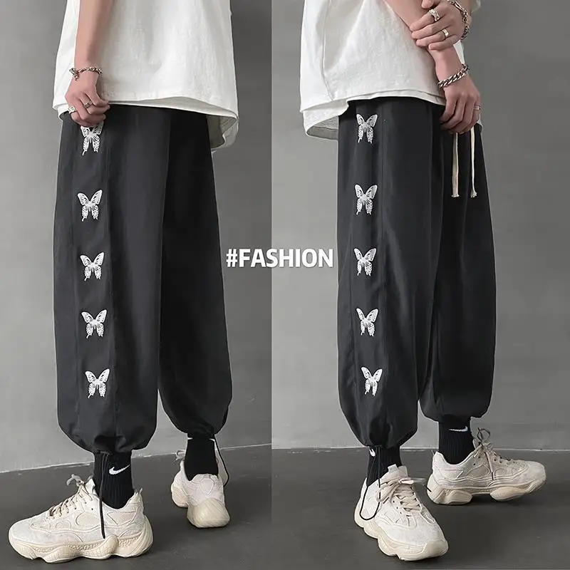Брюки мужские повседневные с принтом бабочки, Модные свободные штаны до щиколотки в стиле Харадзюку, уличная одежда ins для отдыха, новая модель BF