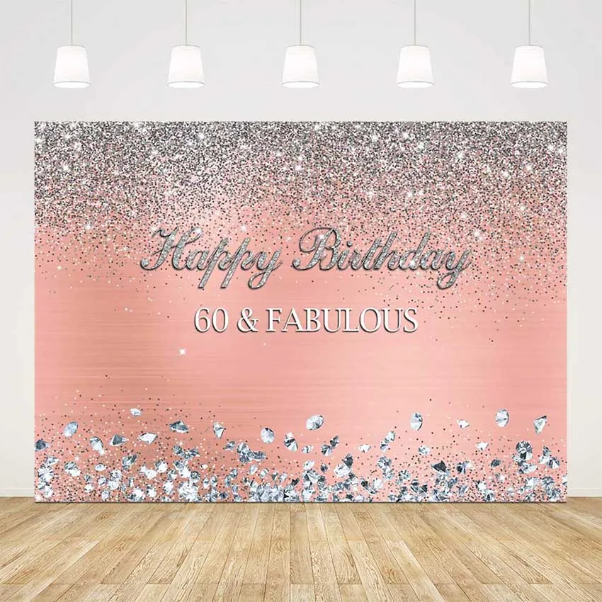 Розовый серебряный фон с блестками и бриллиантами для фотосъемки с днем рождения, 40, 50, 60, 70