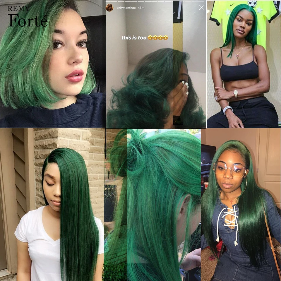 Пряди Remy Forte с застежкой, прямые нефритовые зеленые светлые человеческие волосы, пучки с застежкой, 3 бразильские волосы Remy, волнистые пряди