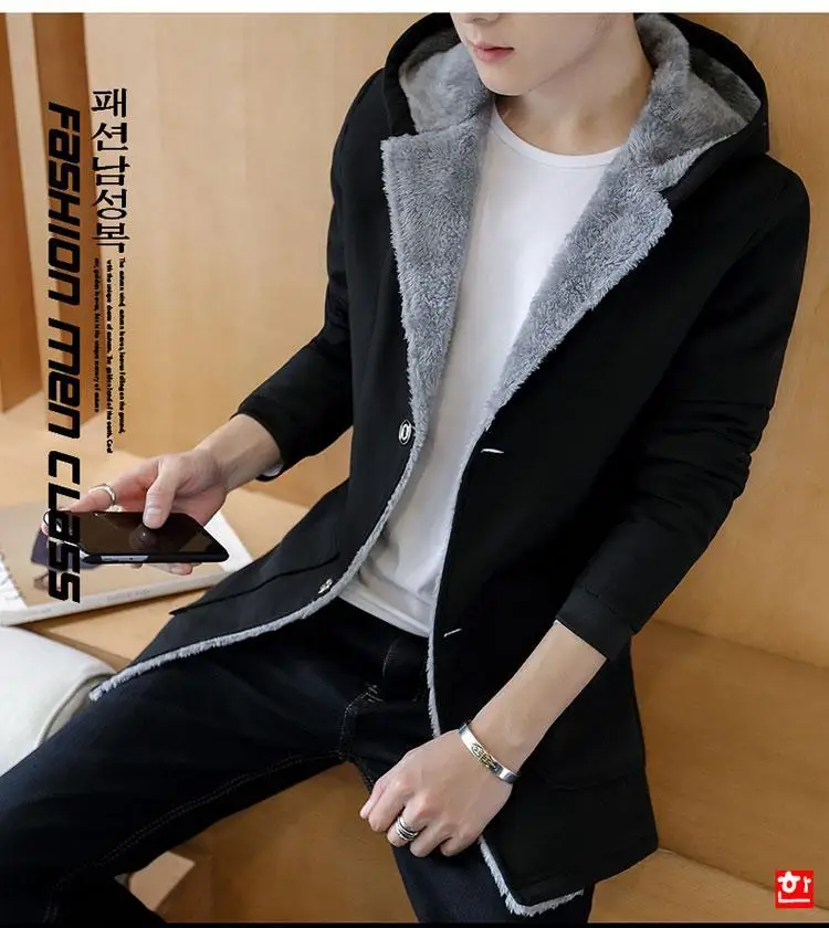 Зимняя мужская куртка с капюшоном, мужские пальто, модная зимняя мужская кашемировая теплая куртка с капюшоном, Тренч, размера плюс, мужские куртки, черные