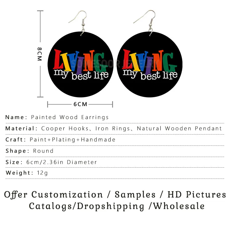 Деревянные висячие серьги SOMESOOR Life Is Good в стиле поп-арт, ми...