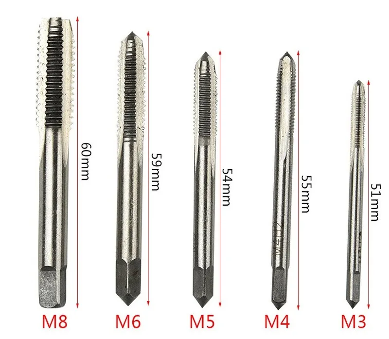 5 шт., винтовые метчики с резьбой из быстрорежущей стали, М3, М4, М5, М6, М8