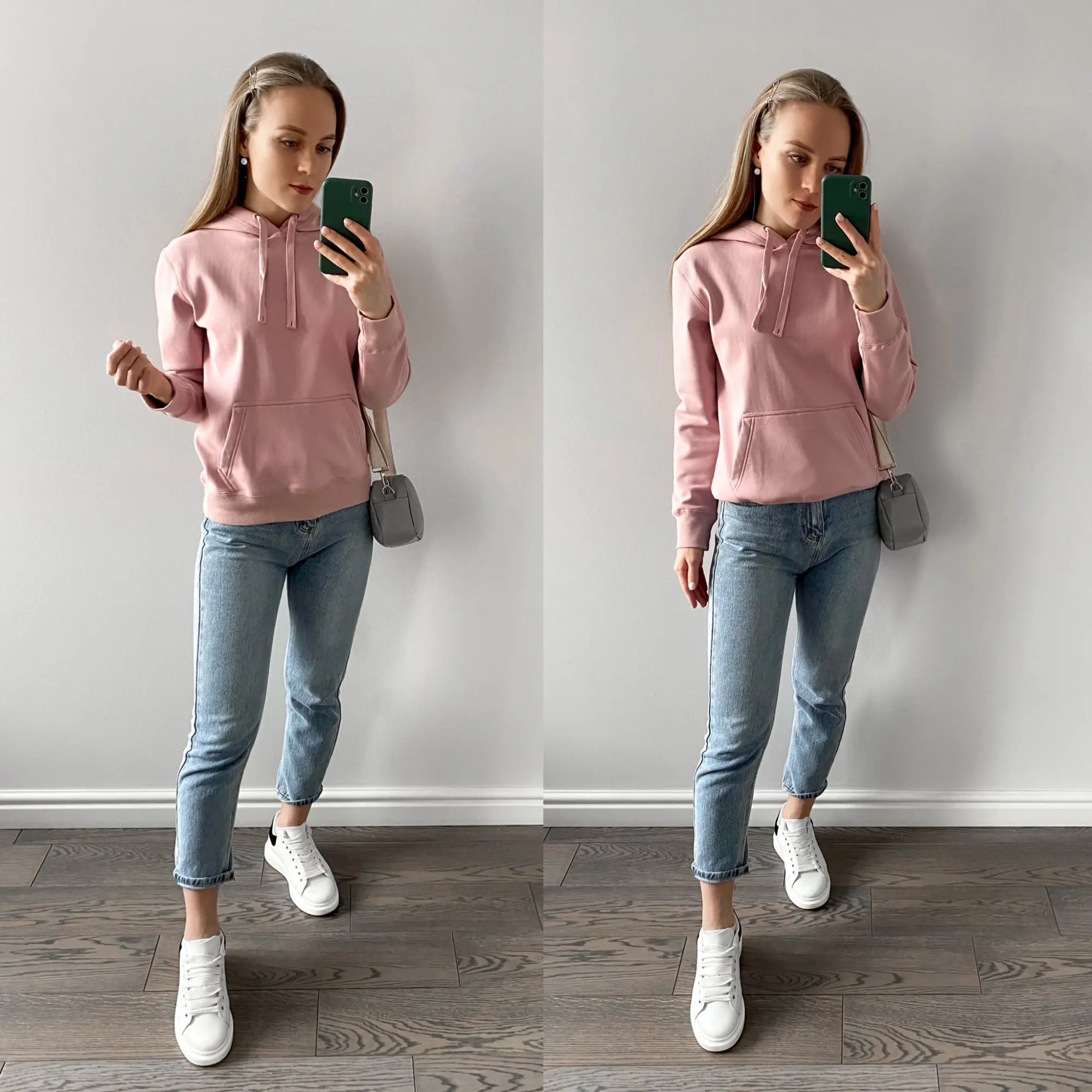 Худи на мои параметры 80/64/85 подошло отлично, село свободно. Рукава на половину закрывают кисть руки, по длине худи на мой рост 152 почти закрывает попу. Это уже второе худи у этого продавца, первое заказывала без утепления жёлтого цвета, поэтому знала что придет качественный товар.