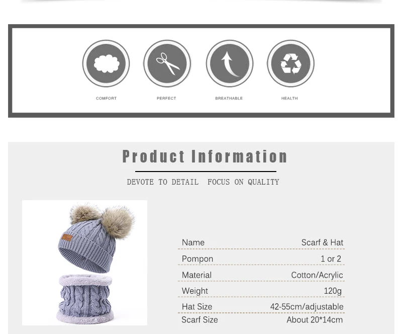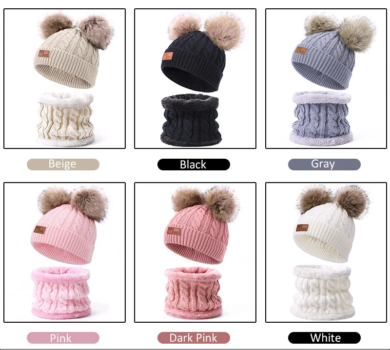 Комплект из двух предметов: шапка и шарф, шапка бини, детские шапки, шапки для девочек, шапки с имитацией Помпона, сохраняющие тепло зимние вязаные шапочки, детский набор бонтов