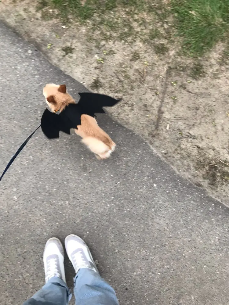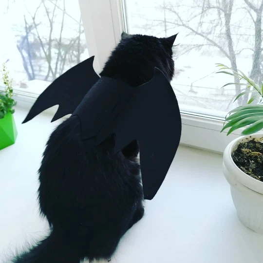 Это очень крутые крылья! Мой Пиксель теперь как повелитель тьмы! Крылья крепятся двумя липучками, застегивается по типу шлейки, только липучками. Сами крылья из плотного фетра, форму держат хорошо. Сделано качественно. Собаке нравится их грызть))