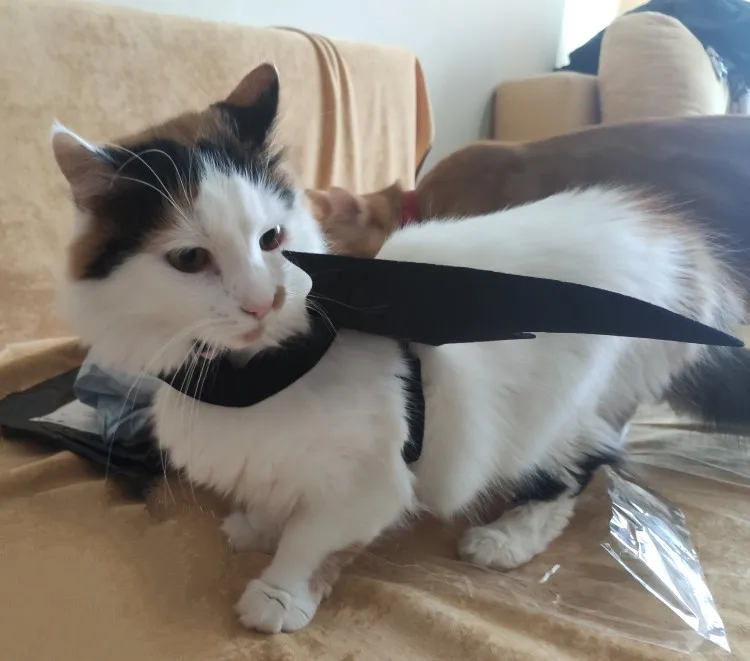 Очень забавная статья на Хэллоуин, которая позволяет хорошему кошке двигаться. Легко надеть и снять, не предполагая торможения для вашего питомца. Очень хорошо.