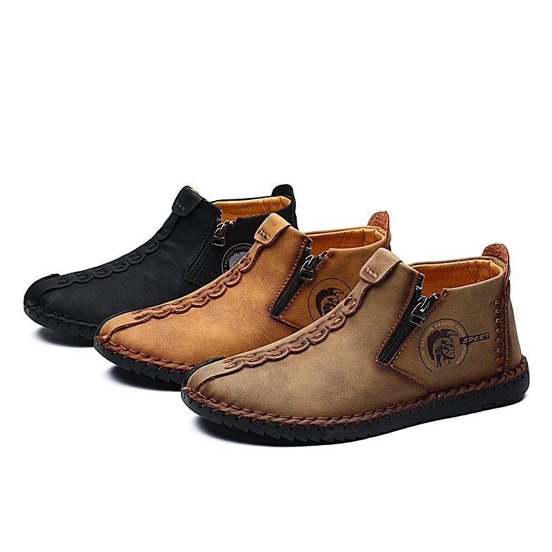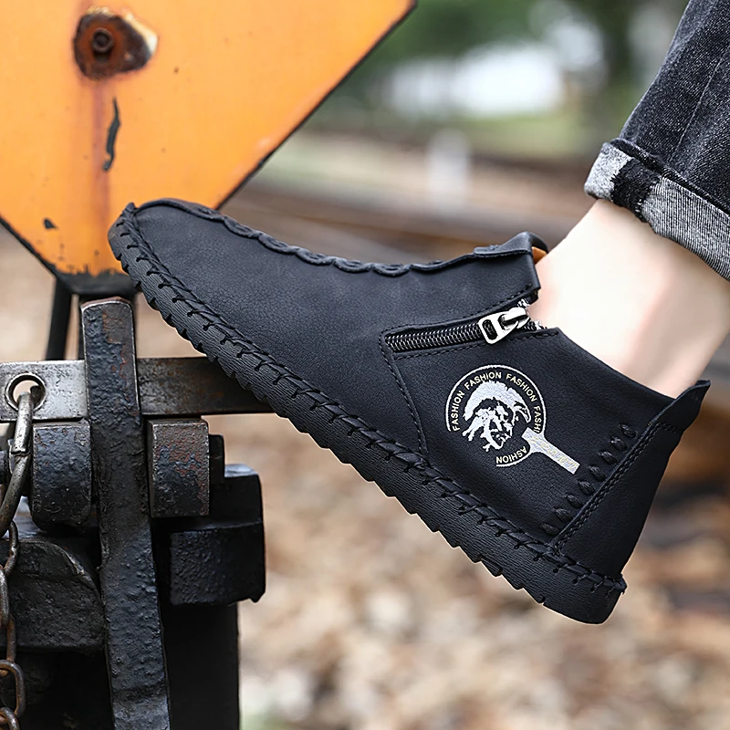 Высококачественная Зимняя мужская обувь, теплые кожаные мужские ботинки с мехом, легкие дышащие повседневные удобные нескользящие ботинки, мужская обувь