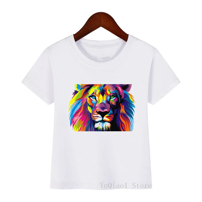 Детская летняя футболка с принтом лошади, собаки, кота, Льва, волка, слона, жирафа, медведя
