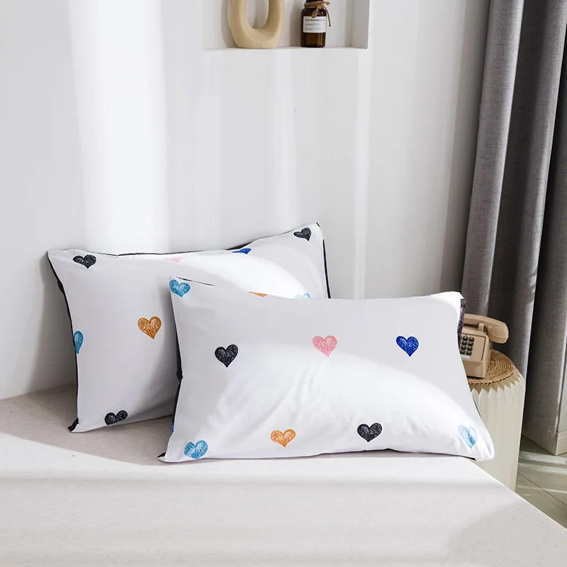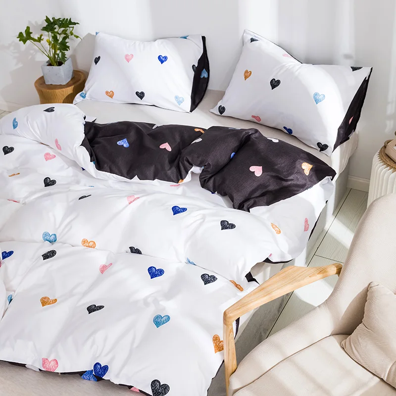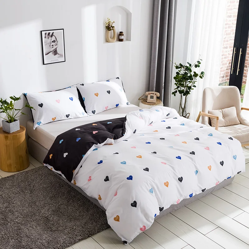 Комплект постельного белья для девочек, с рисунком сердца и сердца, пододеяльник с наволочками, милые комплекты постельного белья белого, черного цветов, с 2 сторон, для двуспальной кровати, большого размера