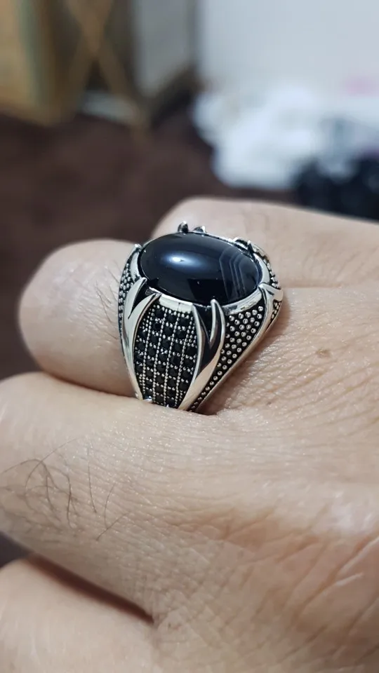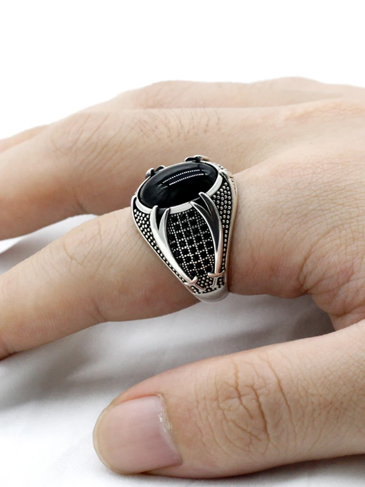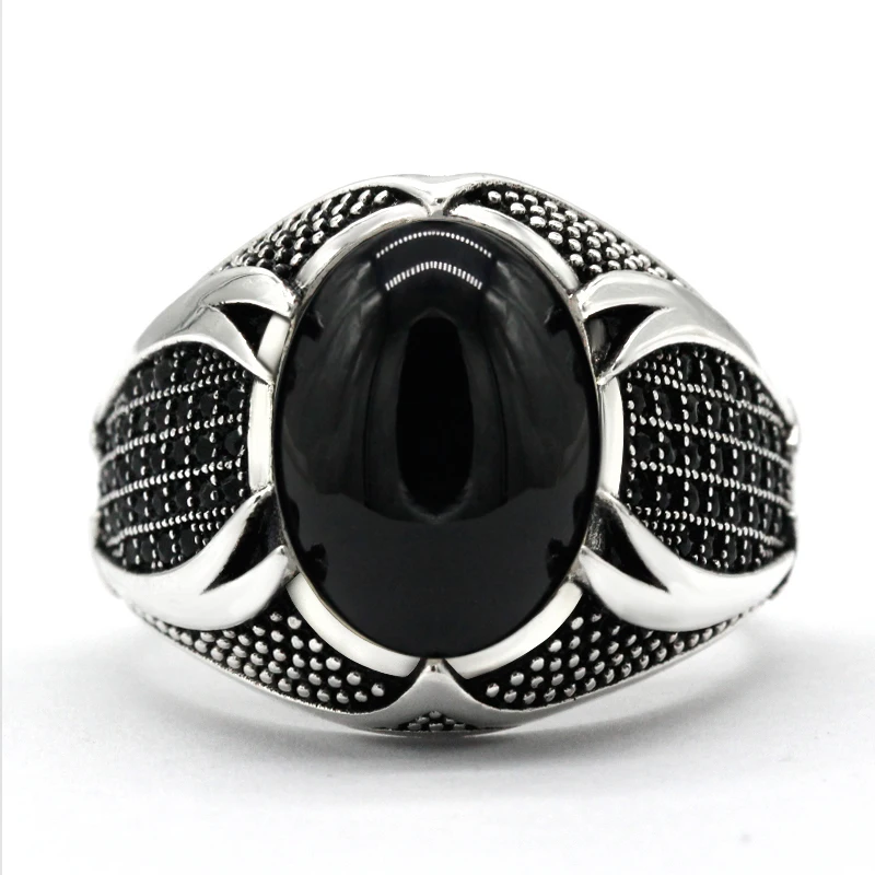 Мужское серебряное кольцо 925 пробы, инкрустированное инкрустацией из натуральной инкрустации инкрустацией из фианита, Мусульманские религиозные высокие ювелирные изделия в подарок
