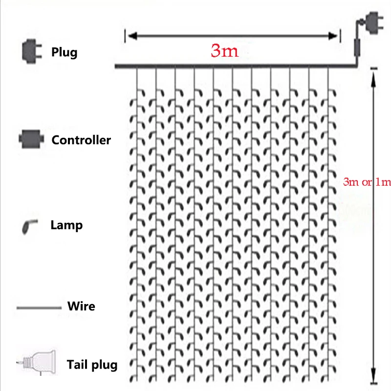 Светодиодная гирсветильник-занавеска на окна, 300 светодиодов