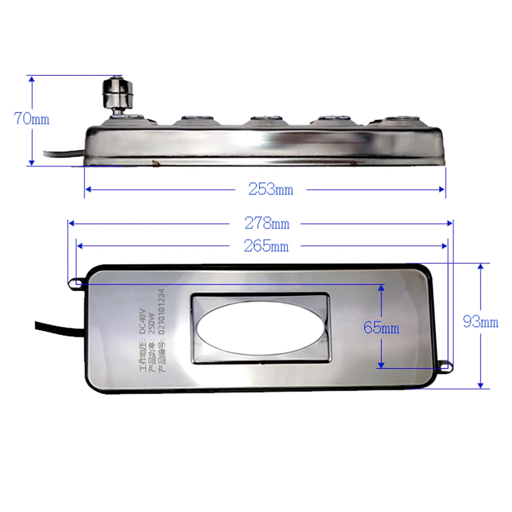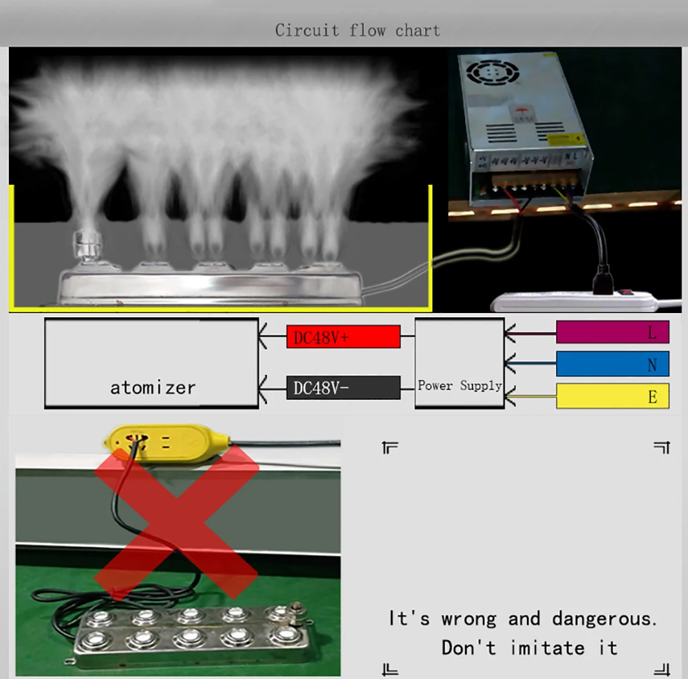 Распылительная плата:Модель: CL-10D48-02Название продукта: Промышленный десятиголовый ультразвуковой распылительРабочее напряжение: 45 ± 3 В постоянного токаНоминальная мощность: 250 ВтОбъем производства тумана: 4,5 л/чРазмер: x 93x70 ммФиксированное расстояние между отверстиями: 265x65 ммДлина хвоста: 150 смСиловые трансформаторы:Модель: S-400-48Название продукта: импульсный источник питанияВходное напряжение: 110 В переменного тока/220 ВВыходное напряжение: 48 В постоянного токаНоминальная мощность: 400 ВтМаксимальная нагрузка: 324 ВтРазмер: 215x115x50 мм