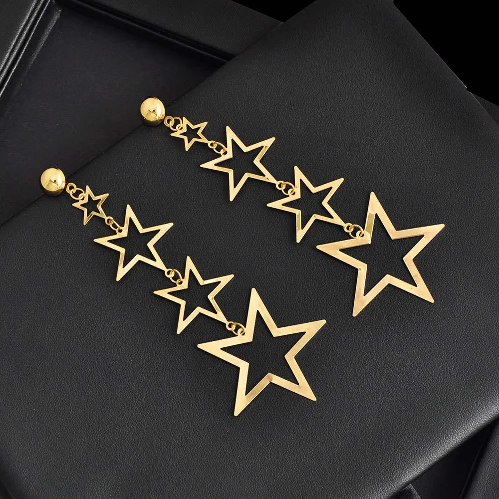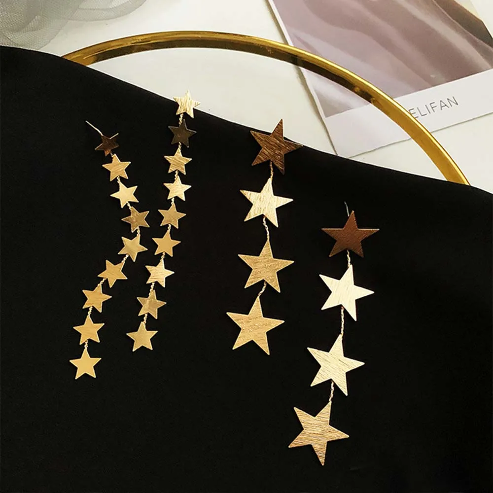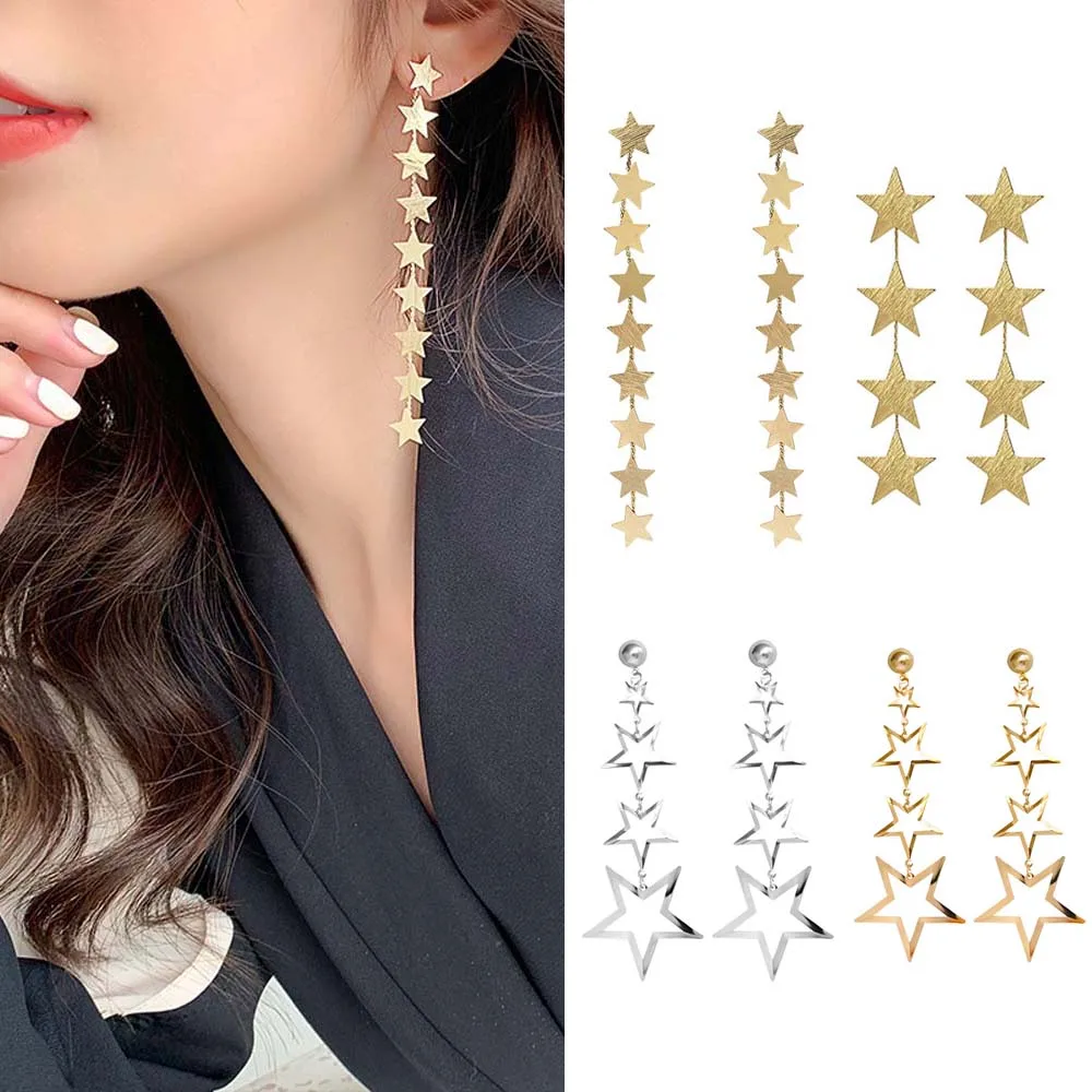 Многослойные Длинные серьги со звездами, женские серьги-подвески золотого цвета, полые элегантные длинные серьги, модные ювелирные украшения